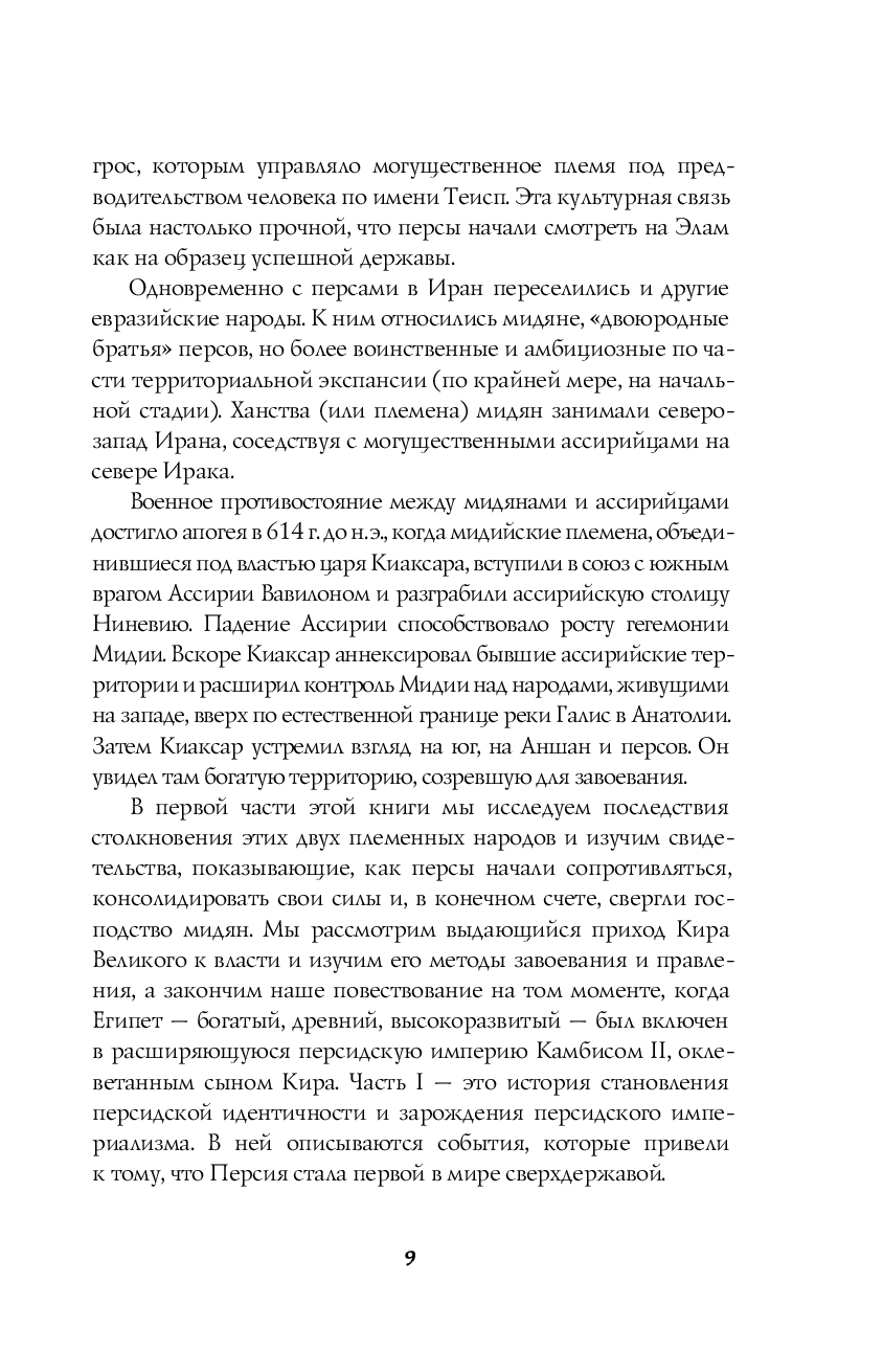 Перед читателем предстанут такие великие деятели древности, как Кир II, Дарий I, Ксеркс I, Дарий III, откроется мир их повседневной жизни, семейных страстей и верований. Книга познакомит со всеми главными этапами древнеперсидской истории: масштабными завоеваниями Кира Великого, централизацией и расцветом империи при Дарии I, многовековом соперничестве персов с греками и крахе державы под натиском Александра Македонского.