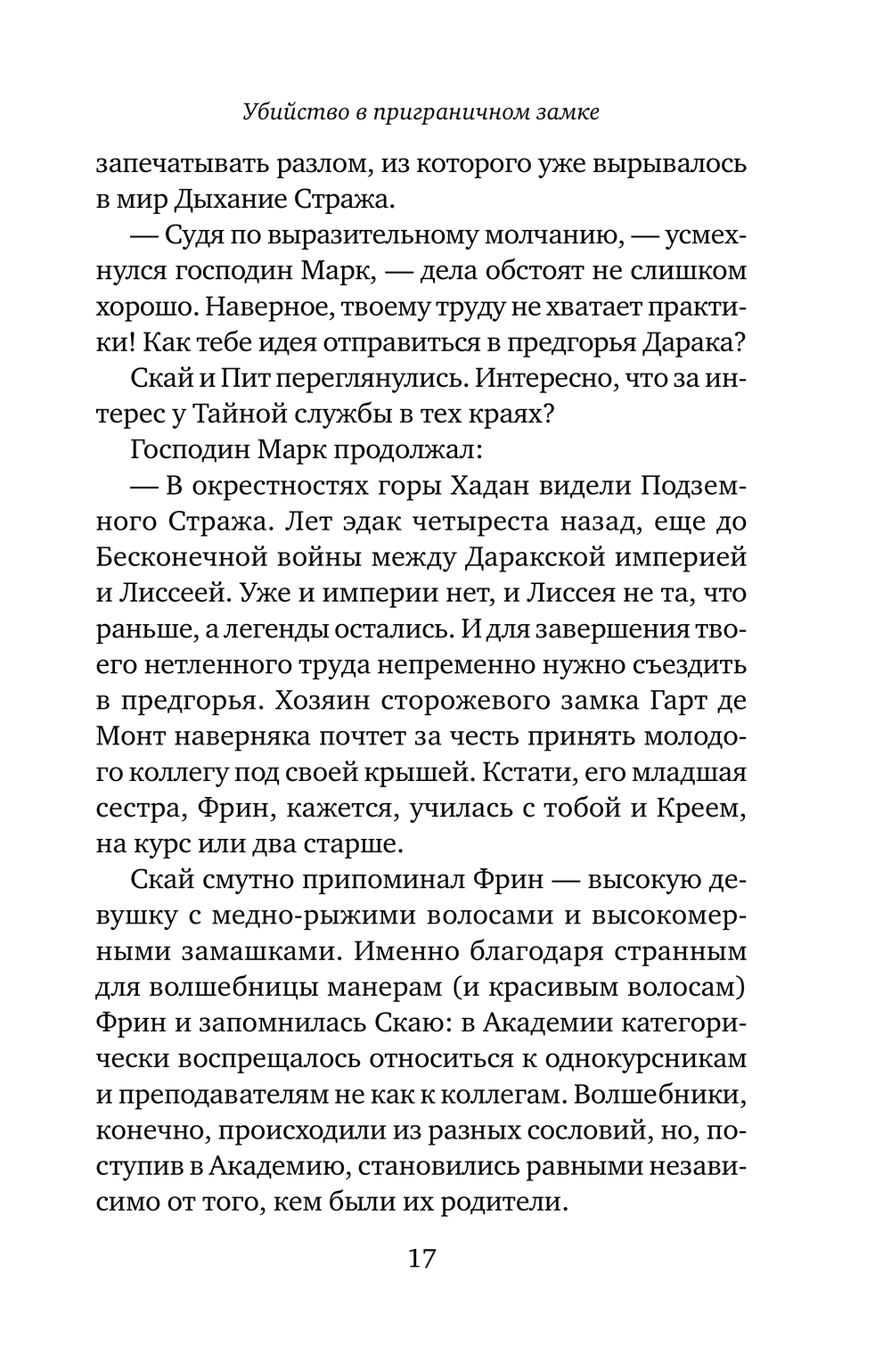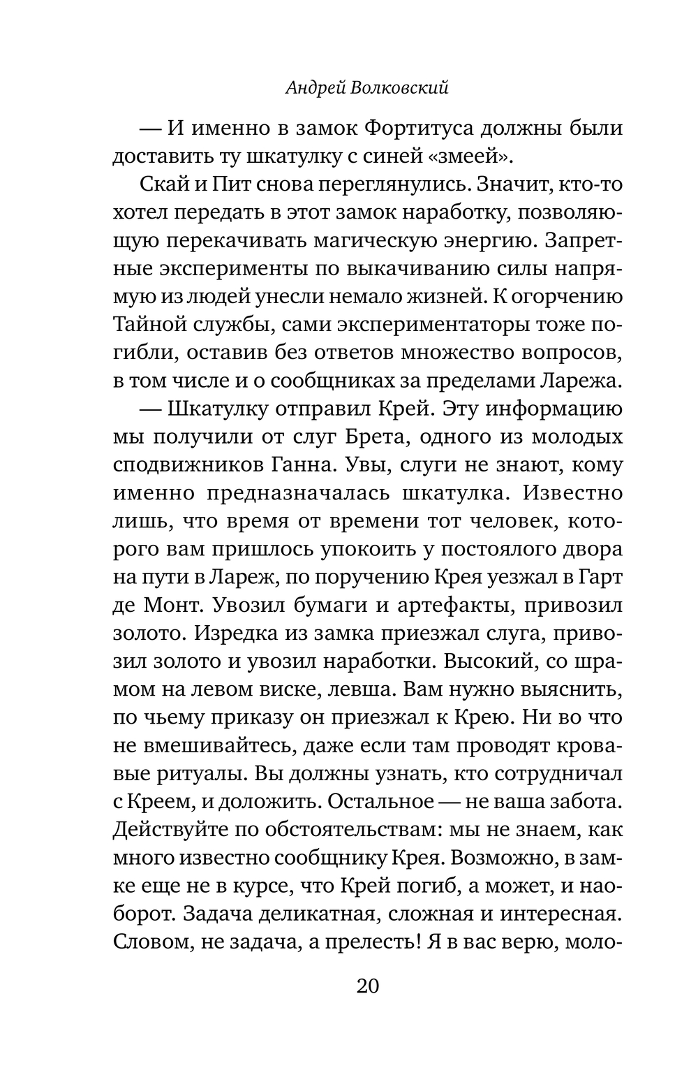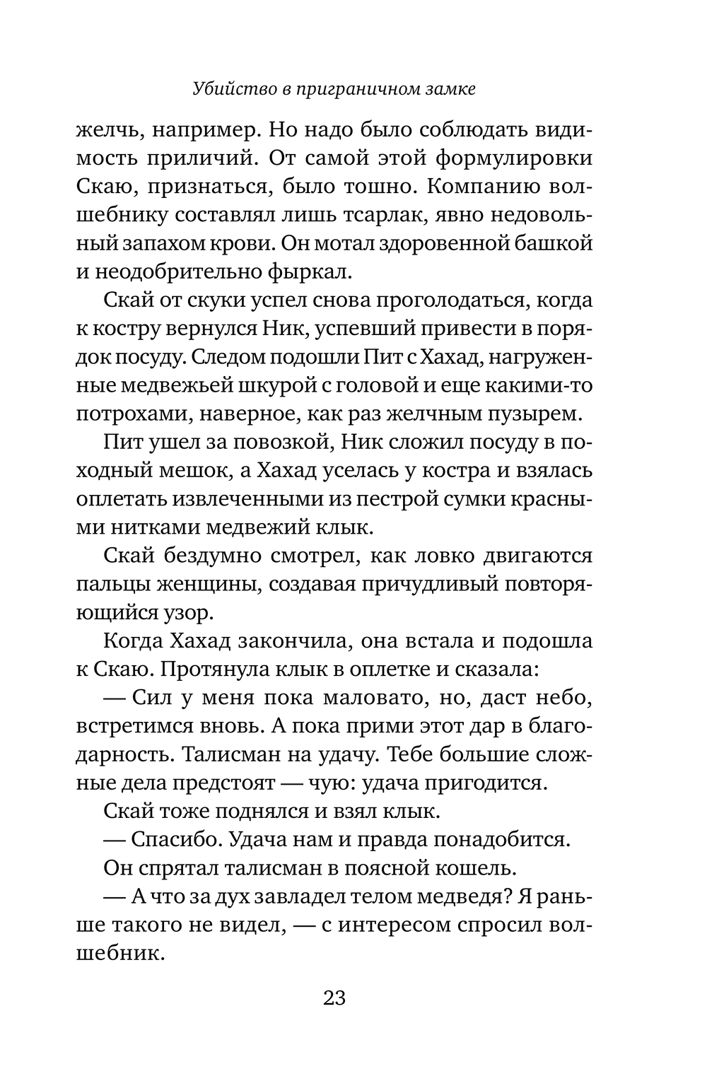 Следы загадочного артефакта, вытягивающего магическую силу, ведут в приграничный замок Гарт де Монт. Тайная служба поручает волшебнику Скаю с друзьями отправиться туда под видом путешественников и вычислить заказчика, но в первую же ночь в замке происходит убийство. Отравлен слуга, и это явно не случайность: кто-то заметает следы или хочет подставить Ская? Ему придется разобраться не только с преступлением, но и раскрыть немало семейных тайн обитателей замка.