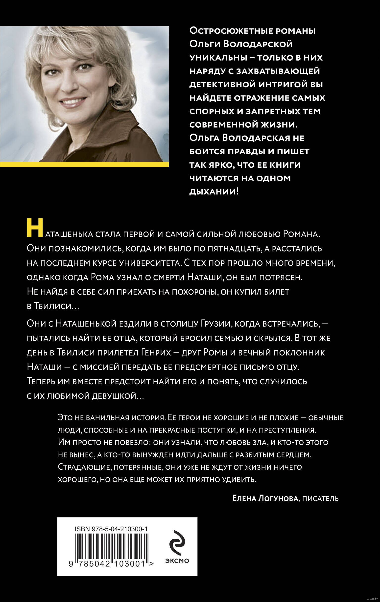 Они с Наташенькой ездили в столицу Грузии, когда встречались, – пытались найти ее отца, который бросил семью и скрылся. В тот же день в Тбилиси прилетел Генрих – друг Ромы и вечный поклонник Наташи – с миссией передать ее предсмертное письмо отцу. Теперь им вместе предстоит найти его и понять, что случилось с их любимой девушкой...