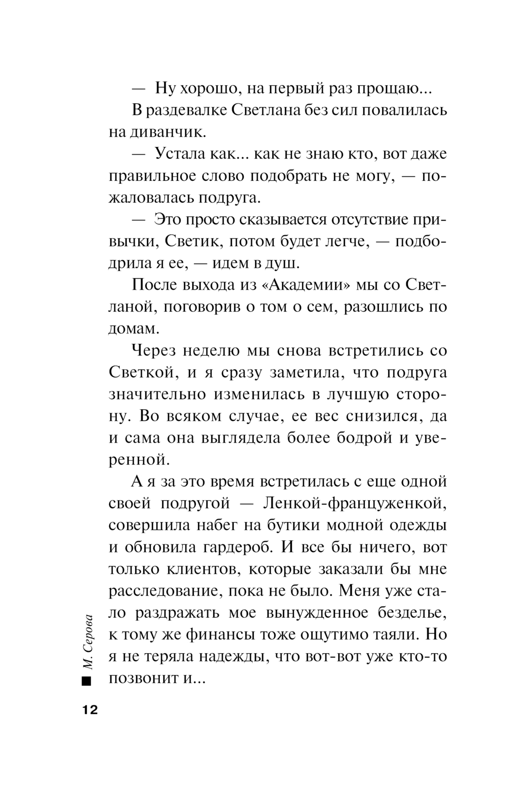 Бизнесмен Константин Чернохвостиков сообщил всем своим близким и знакомым, что отправляется в отпуск на Кубу, но когда он не вернулся с курорта в назначенный день и перестал отвечать на звонки, его отец обратился к частному детективу Татьяне Ивановой. Сыщица начала поиски пропавшего мужчины и узнала, что его фитнес-центр "Академия идеального тела" имел огромные проблемы...