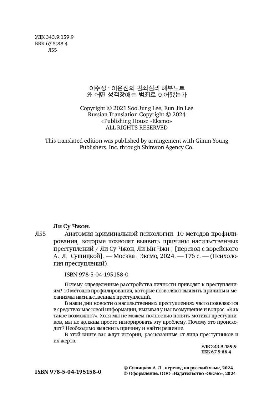 Условия бонусной программы| Название в оригинале | 이수정 이은진의 범죄심리 해부노트 왜 어떤 성격장애는 범죄로 이어졌는가 |