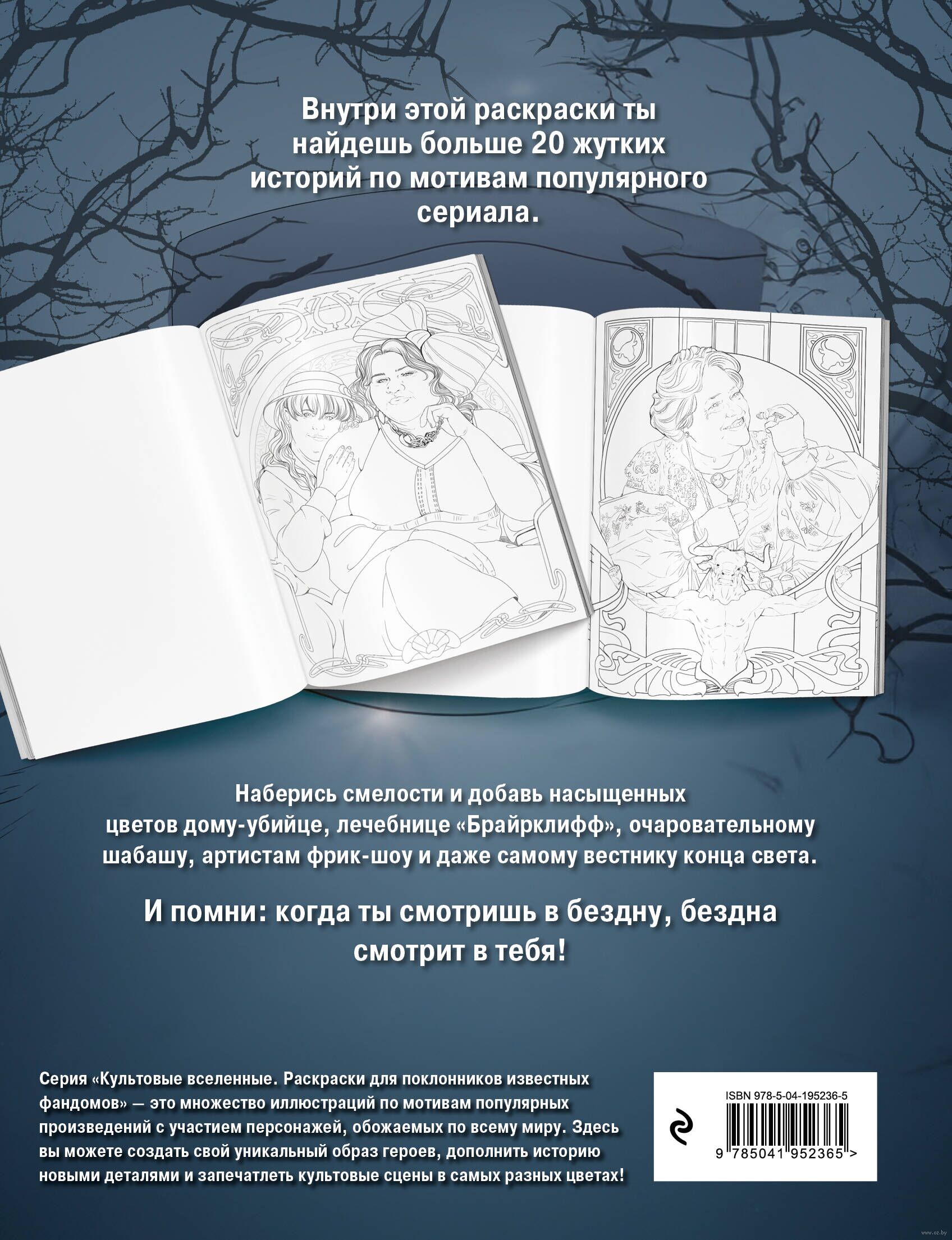 Погрузитесь в невероятную атмосферу культового сериала American horror story. Внутри этой раскраски вас ждут знакомые сюжеты и любимые персонажи: от дома убийцы и семьи Хармон до вестника конца света – Майкла Лэнгдона и кровавой графини Элизабет.