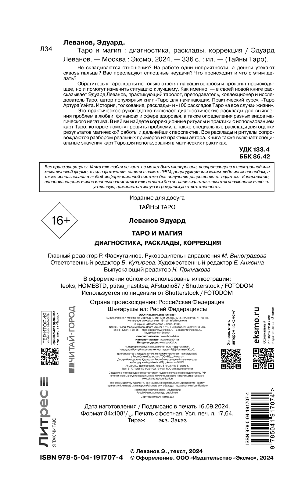 Обратитесь к Таро: карты не только ответят на ваши вопросы и прояснят происходящее, но и помогут изменить ситуацию к лучшему. Как именно – в своей новой книге рассказывает Эдуард Леванов, практикующий таролог, преподаватель, коллекционер и исследователь Таро, автор популярных книг "Таро для начинающих. Практический курс", "Таро Артура Уэйта. История, толкование, расклады" и "100 раскладов Таро на все случаи жизни".