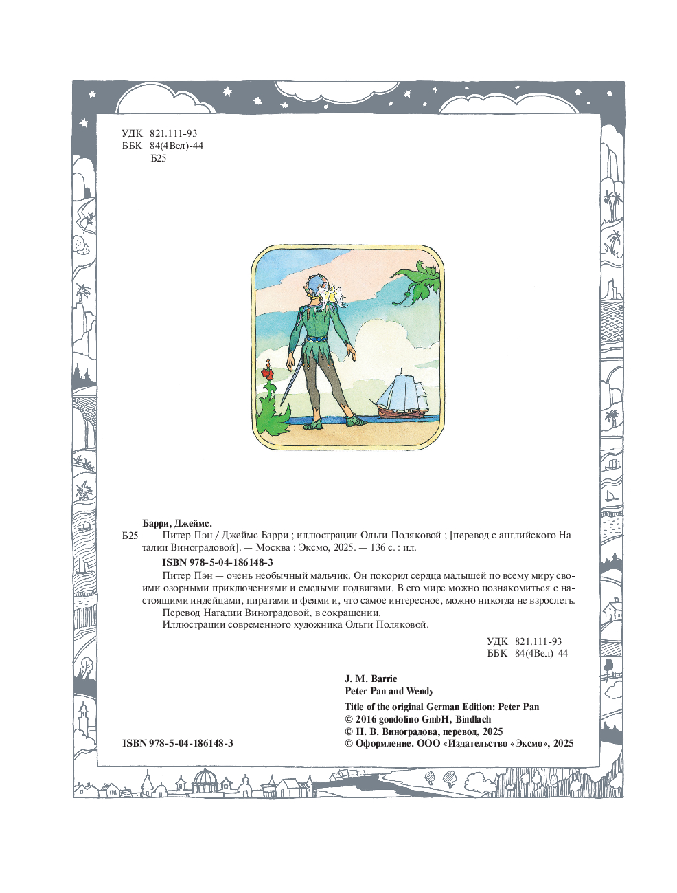 Питер Пэн – очень необычный мальчик. Он покорил сердца малышей по всему миру своими озорными приключениями и смелыми подвигами. В его мире можно познакомиться с настоящими индейцами, пиратами и феями и, что самое интересное, можно никогда не взрослеть.