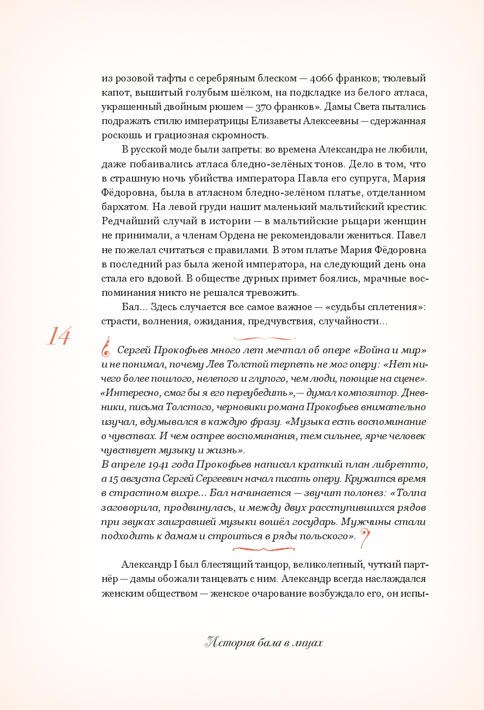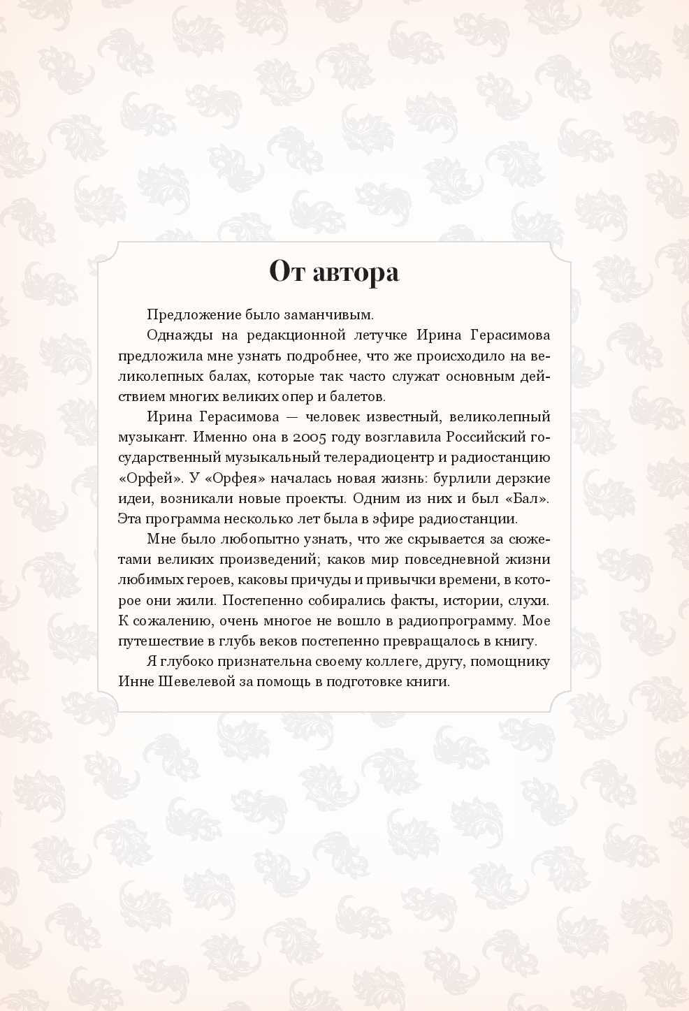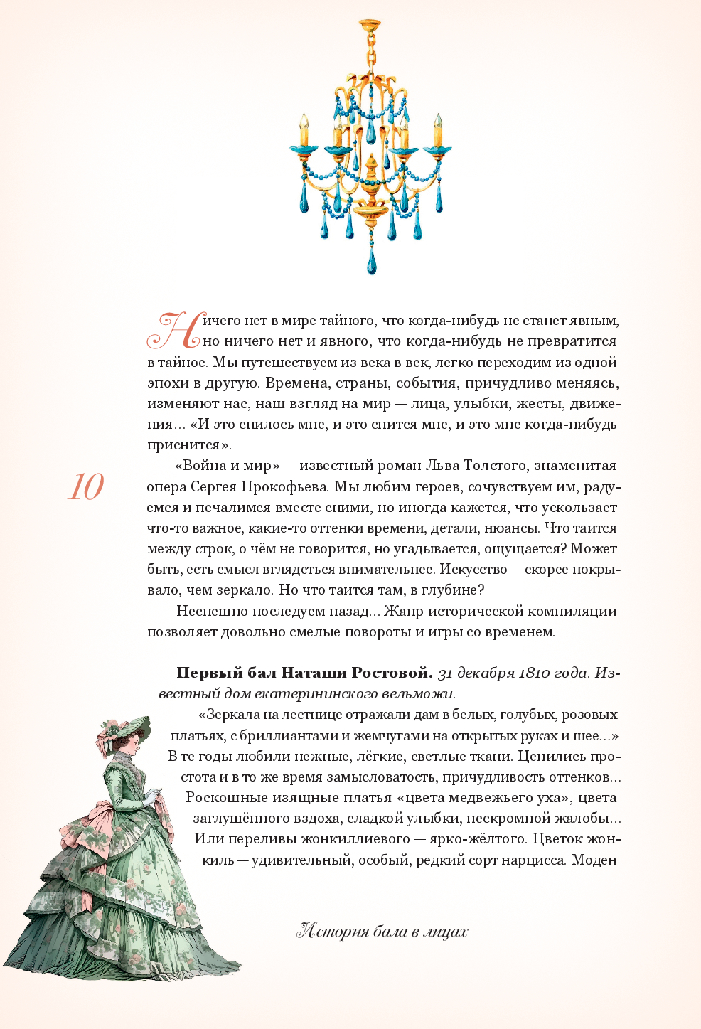 В опере или балете одно из центральных действий часто занимает бал. И именно в бальных сценах отражается светская жизнь: что носили тогда люди, что они обсуждали, какие были правила приличия. Даже мелкие детали гардероба или жесты могли рассказать о человеке почти всё. Автор этой книги Ирина Кленская проводит нас сквозь века, показывая разные эпохи через культурные жемчужины: "Травиату", "Щелкунчика", "Иоланту", "Войну и мир", "Бориса Годунова" и "Фауста". Каждая глава написана в жанре исторического приключения и сопровождается иллюстрациями, помогающими глубже погрузиться в контекст. Перед вами не скучные перечисления фактов, а живые рассказы о людях и судьбах, нашедшие отражение в культовых произведениях классиков.