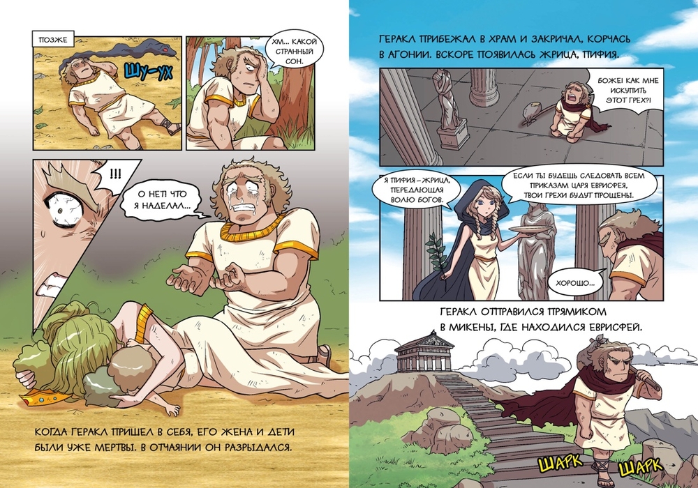 В этой книге всем знакомые мифы Древней Греции изложены в формате комиксов, необычном, увлекательном и легком для понимания.