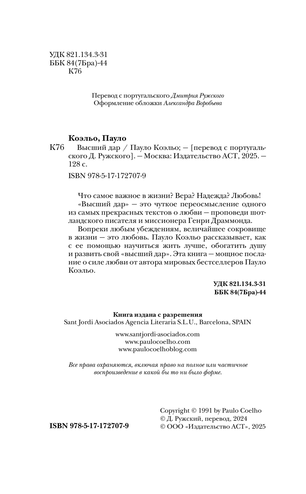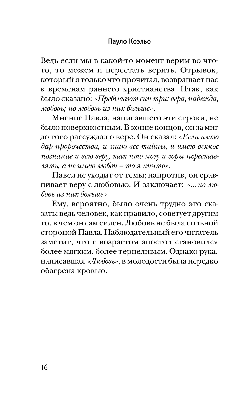 Пауло Коэльо рассказывает, как с ее помощью научиться жить лучше, обогатить душу и развить свой "высший дар". Эта книга – мощное послание о силе любви от автора мировых бестселлеров Пауло Коэльо.