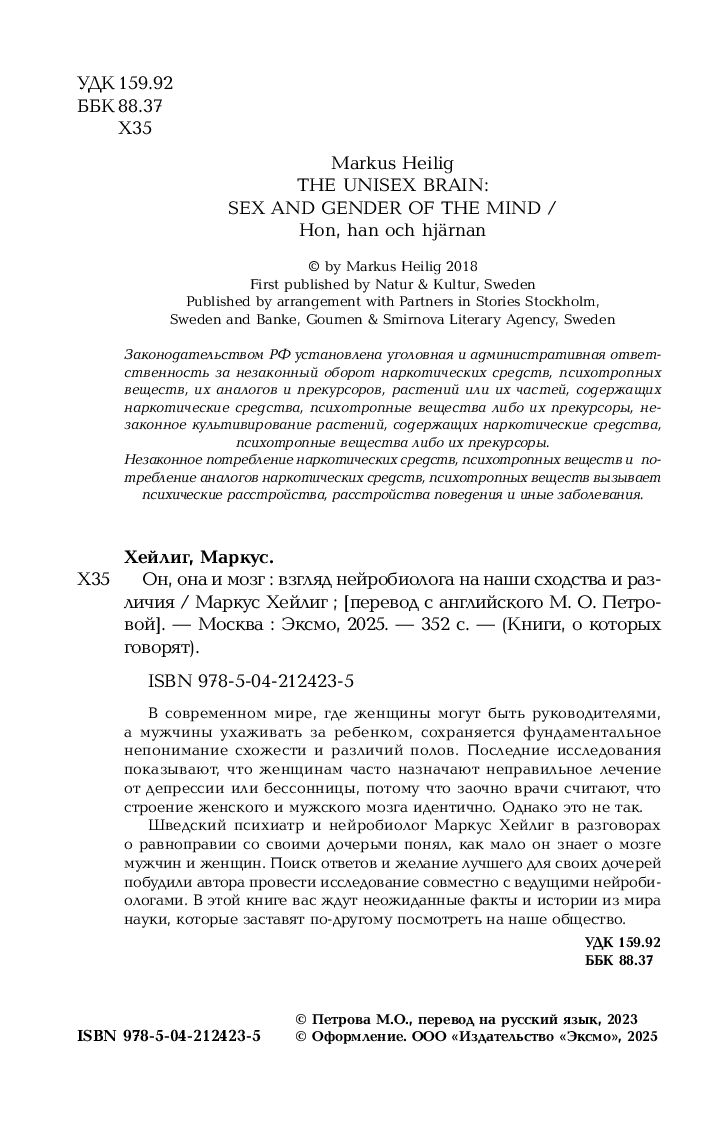 Шведский психиатр и нейробиолог Маркус Хейлиг в разговорах о равноправии со своими дочерьми понял, как мало он знает о мозге мужчин и женщин. Поиск ответов и желание лучшего для своих дочерей побудили автора провести исследование совместно с ведущими нейробиологами. В этой книге вас ждут неожиданные факты и истории из мира наук, которые заставят по-другому посмотреть на наше общество.