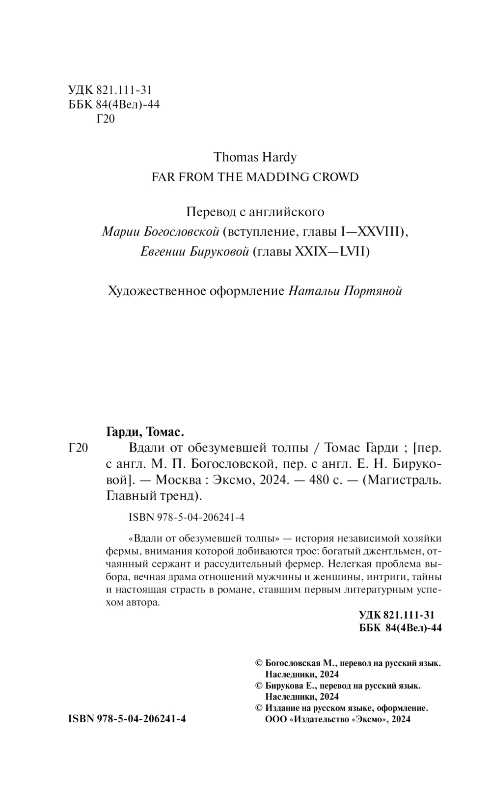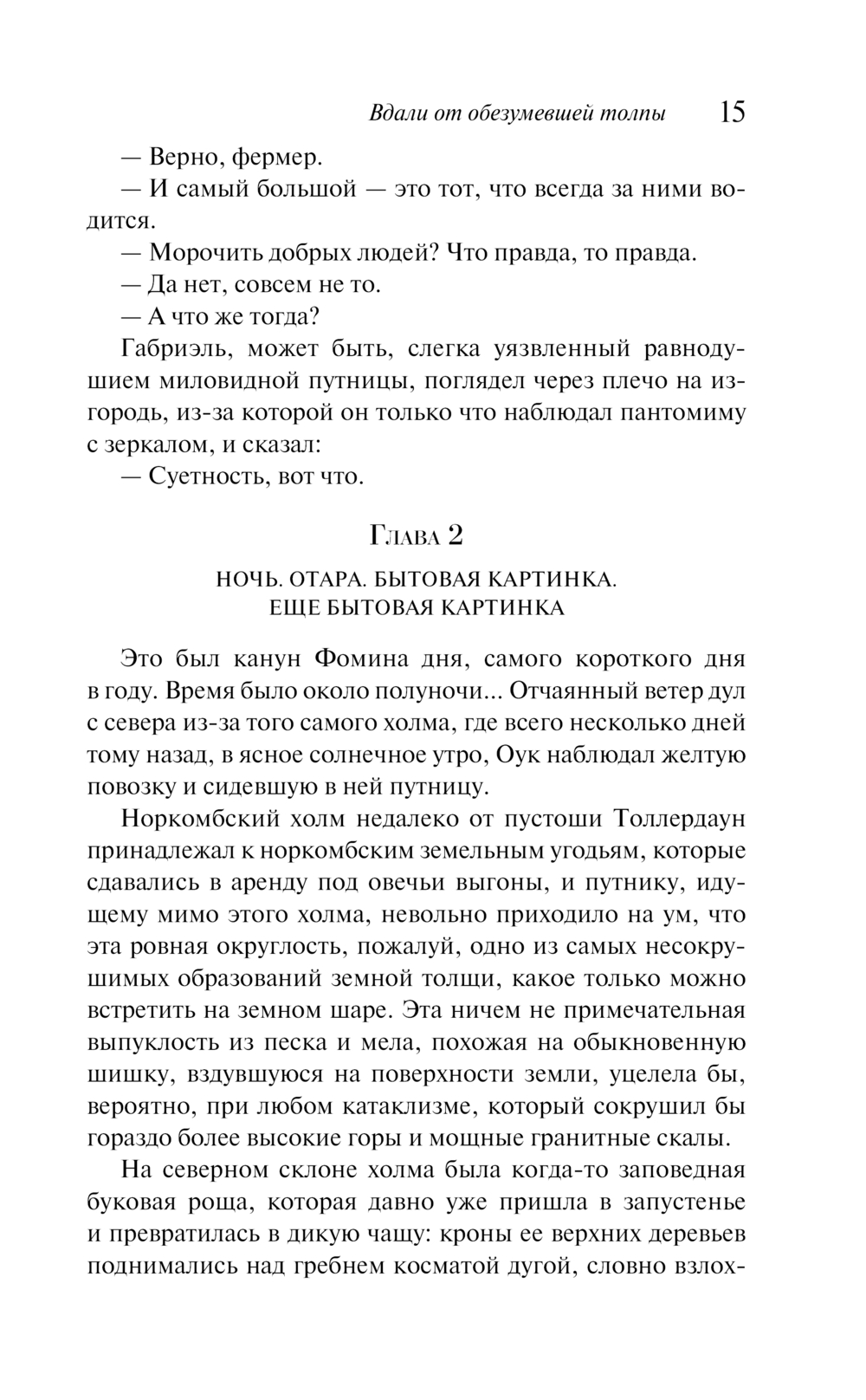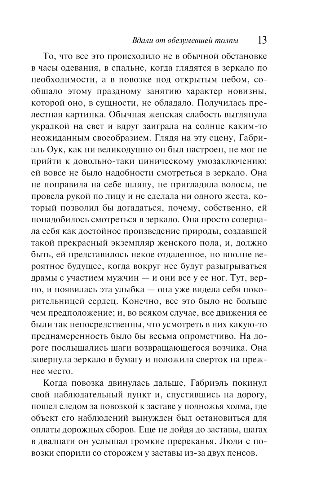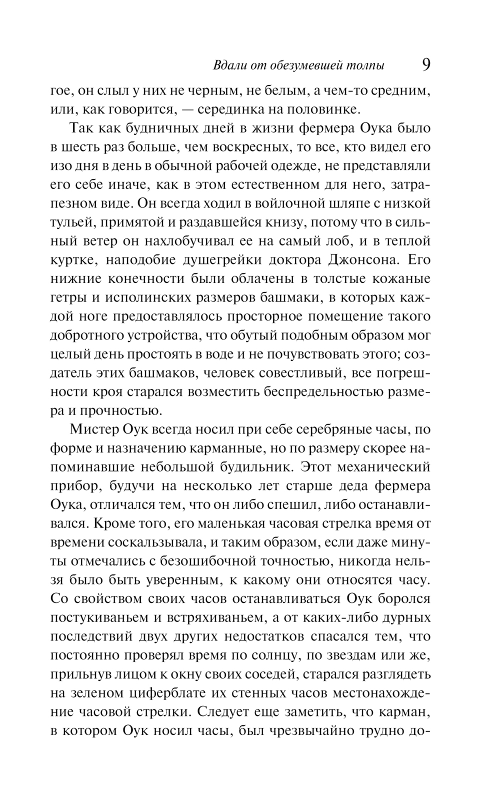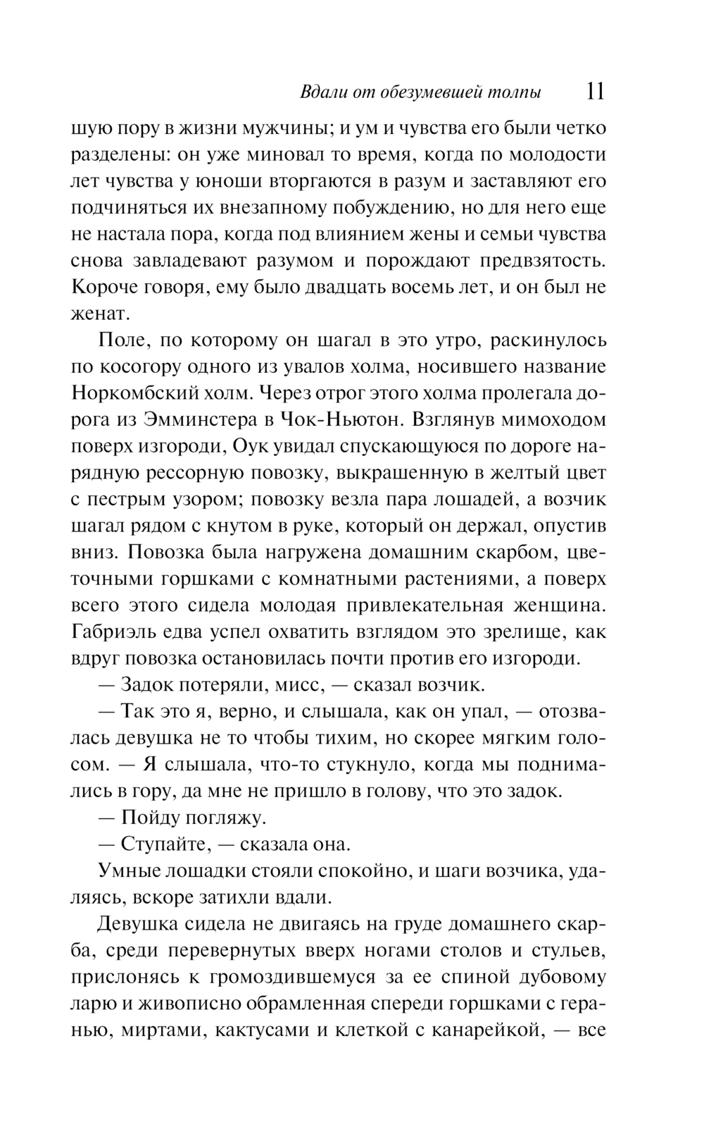 "Вдали от обезумевшей толпы" – история независимой хозяйки фермы, внимания которой добиваются трое: богатый джентльмен, отчаянный сержант и рассудительный фермер. Нелегкая проблема выбора, вечная драма отношений мужчины и женщины, интриги, тайны и настоящая страсть в романе, ставшем первым литературным успехом автора.