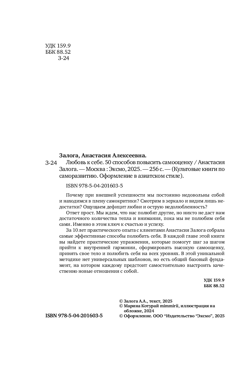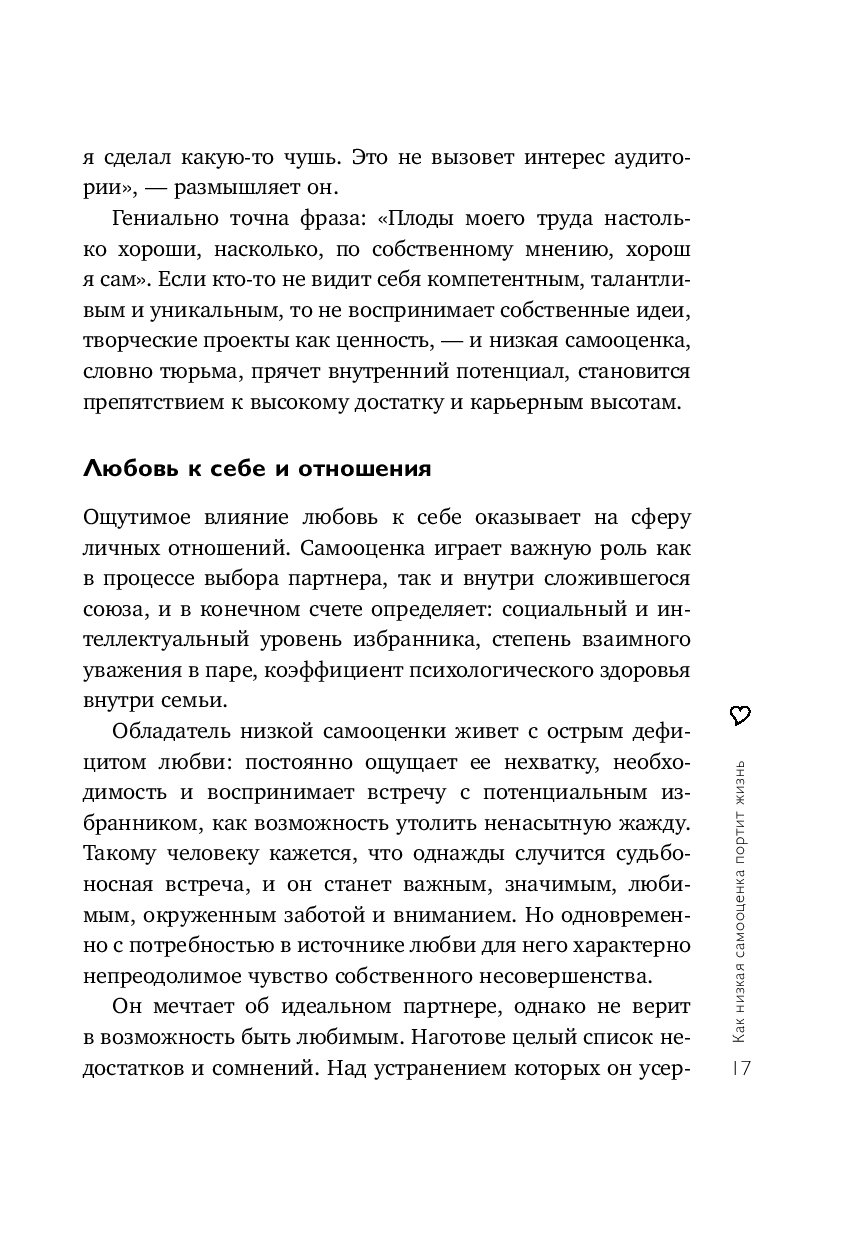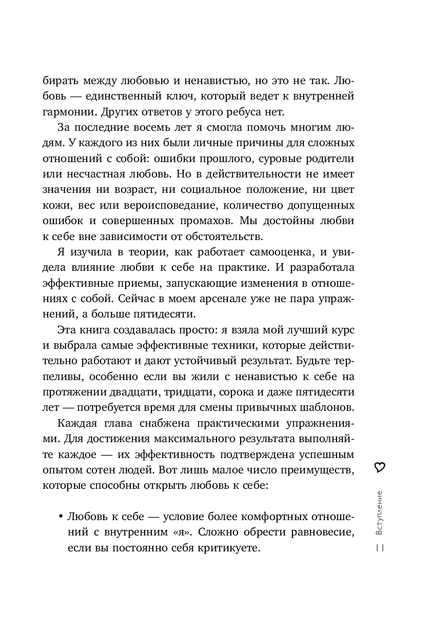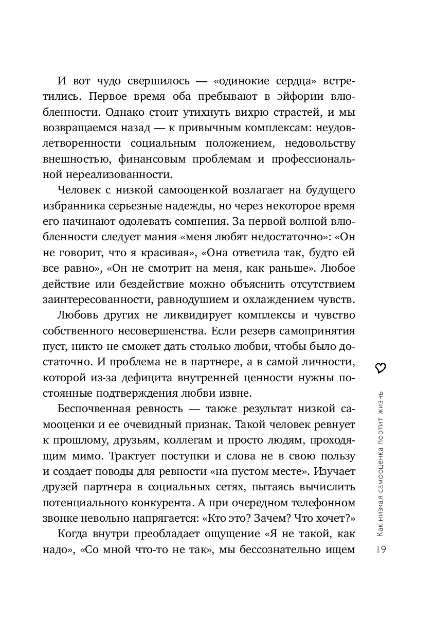 За 10 лет практического опыта с клиентами Анастасия Залога собрала самые эффективные способы полюбить себя. В каждой главе этой книги вы найдете практические упражнения, которые помогут шаг за шагом прийти к внутренней гармонии, сформировать правильную самооценку, принять свое тело и полюбить себя на всех уровнях. В этой уникальной методике нет универсальных шаблонов, но есть общий базовый фундамент, на котором каждому предстоит самостоятельно выстроить качественно новые отношения с собой.