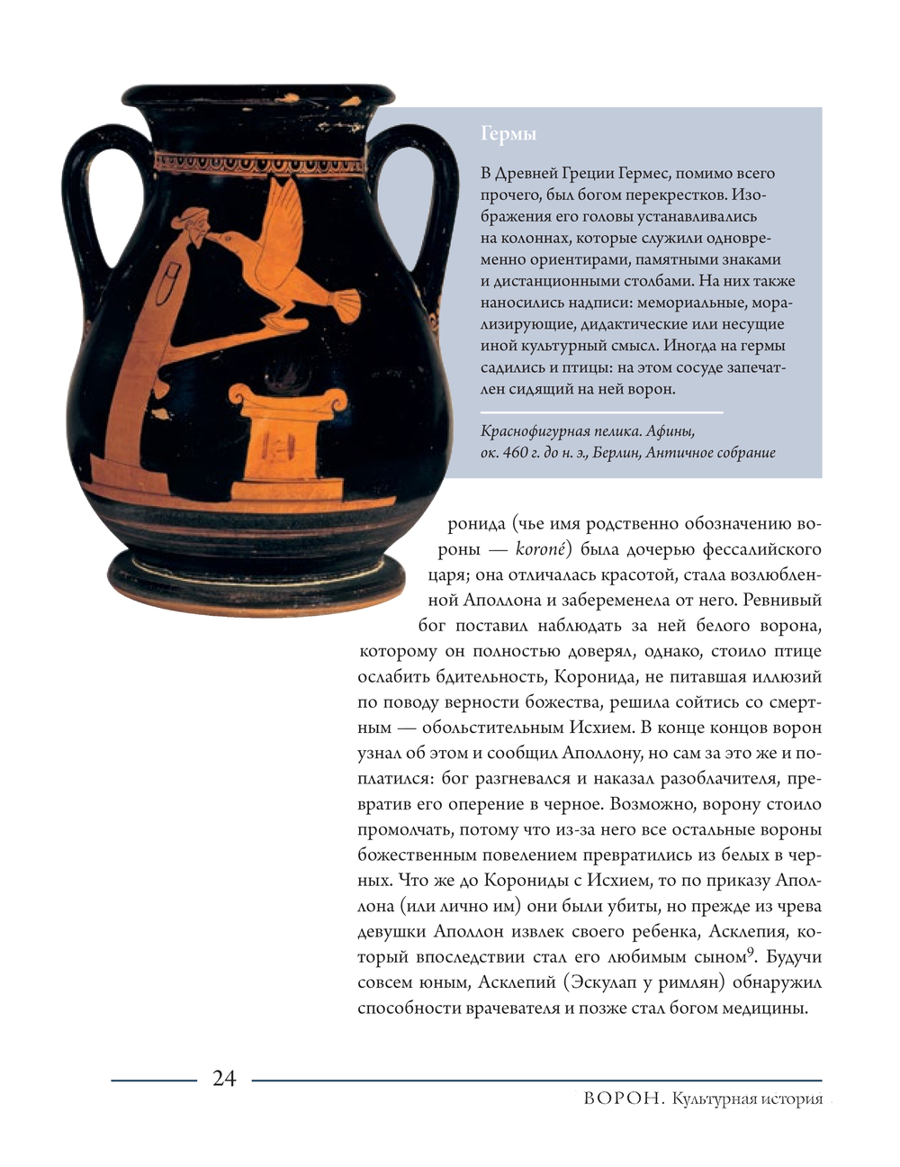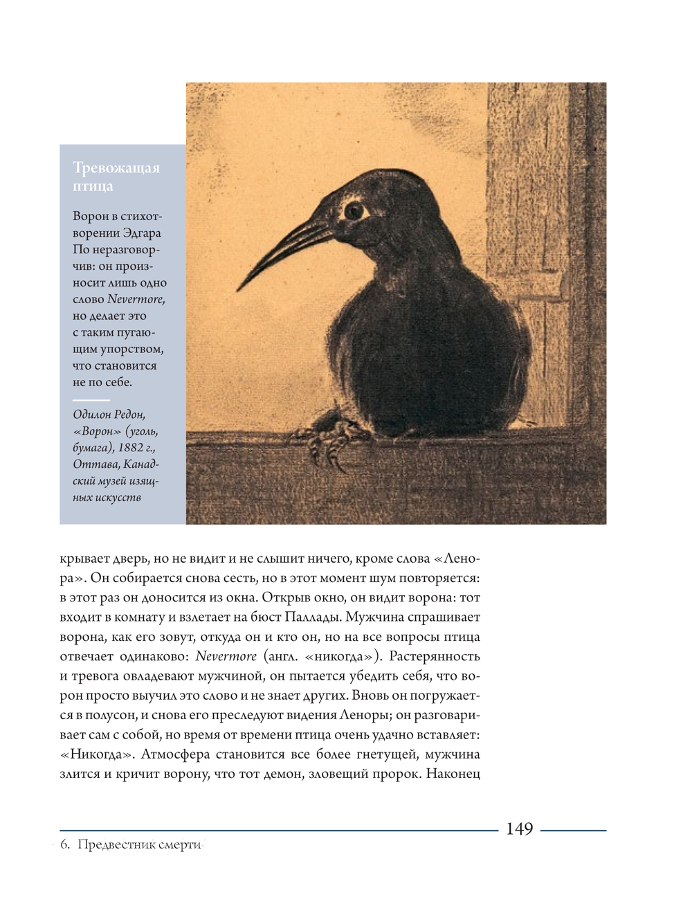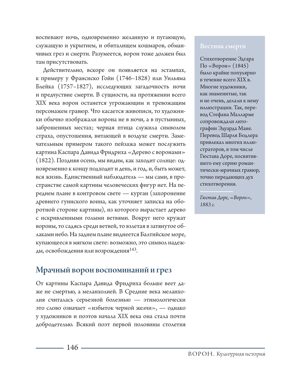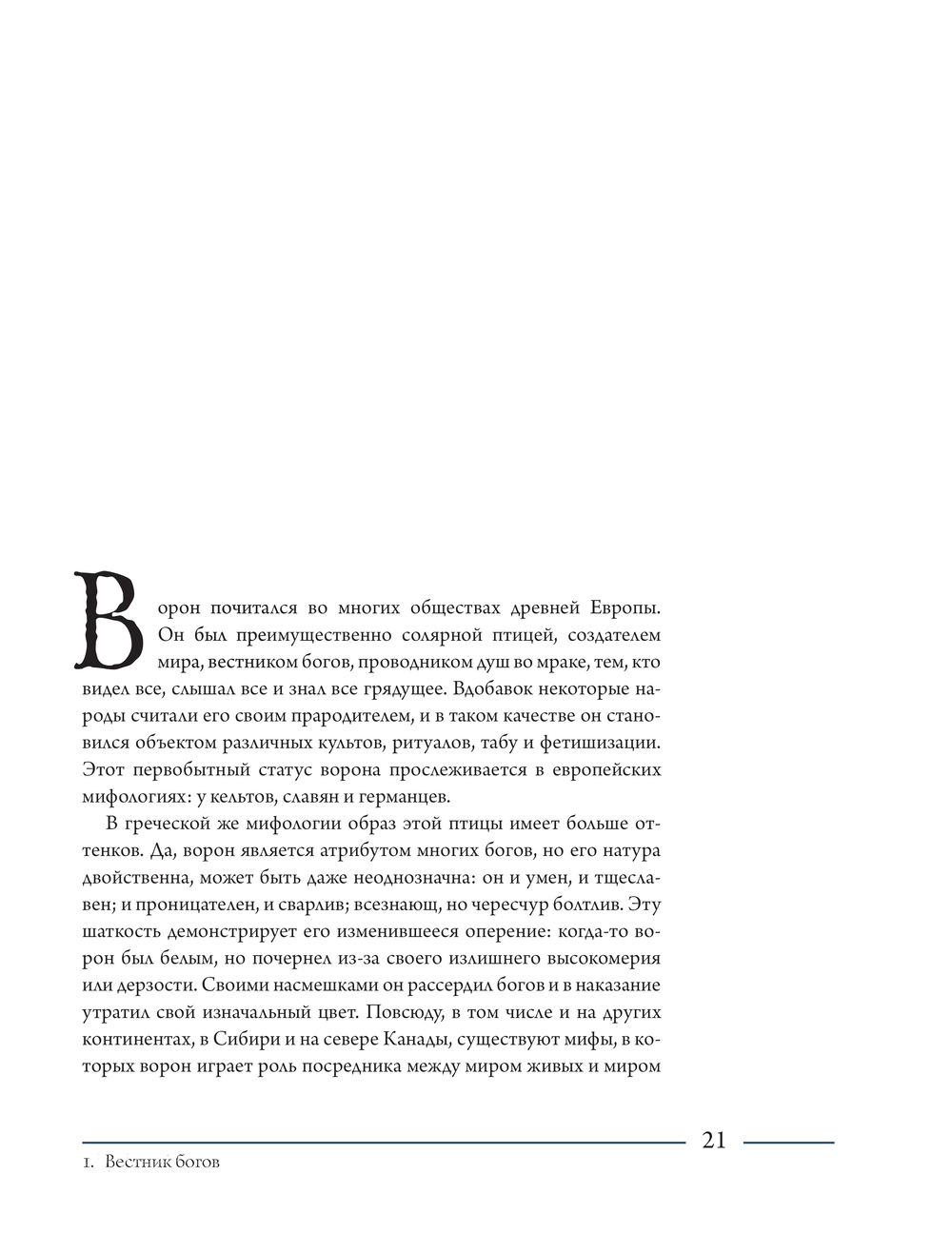 Ворон – один из ключевых образов для европейской символики и культуры. Ворону поклонялись еще в глубокой древности. Согласно античной мифологии за тщеславие он был наказан богами, и его белое оперение сменилось черным. Кельты и германцы считали, что черная птица служит вестником богов. Христианское Средневековье видело в вороне воплощение сил зла, объявило ему войну, и Церковь даже стала продвигать другой птичий образ – орла. Так закрепился негативный образ ворона в сказках, баснях и поэзии, основанный на страхе и отвращении.