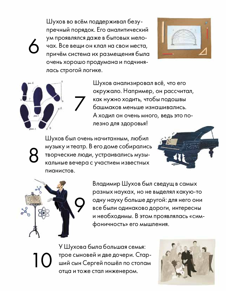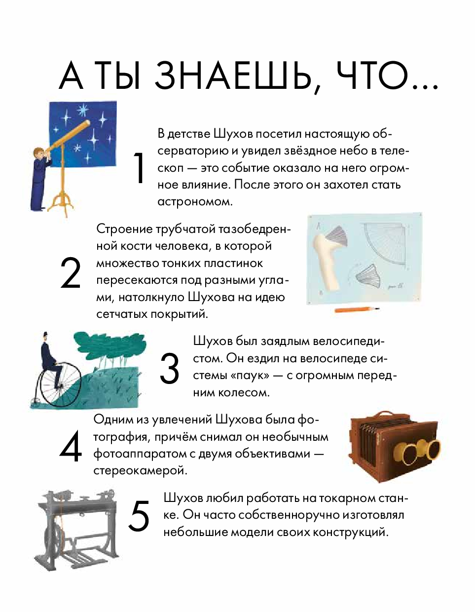 Эта краткая иллюстрированная биография расскажет о жизни блестящего инженера. Как обучение анатомии повлияло на работу Шухова? Что такое "симфоничность" мышления и в чем она проявляется? Почему нефтяники поставили Шухову памятник? А еще о том, как важно расширять кругозор и поддерживать порядок на своем рабочем месте.