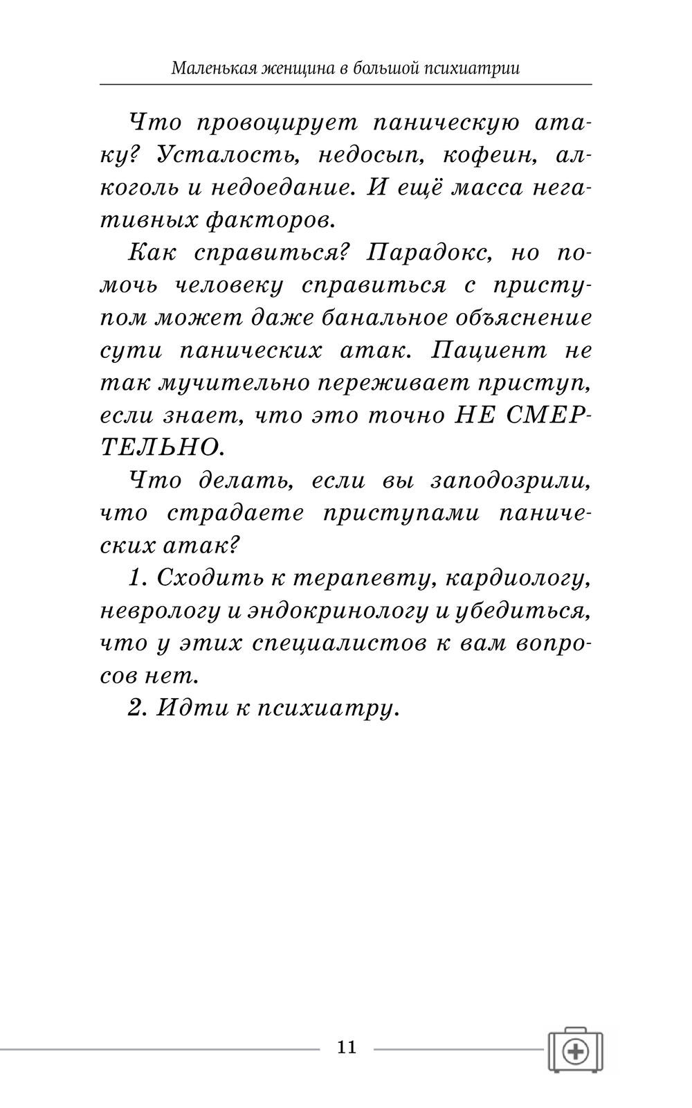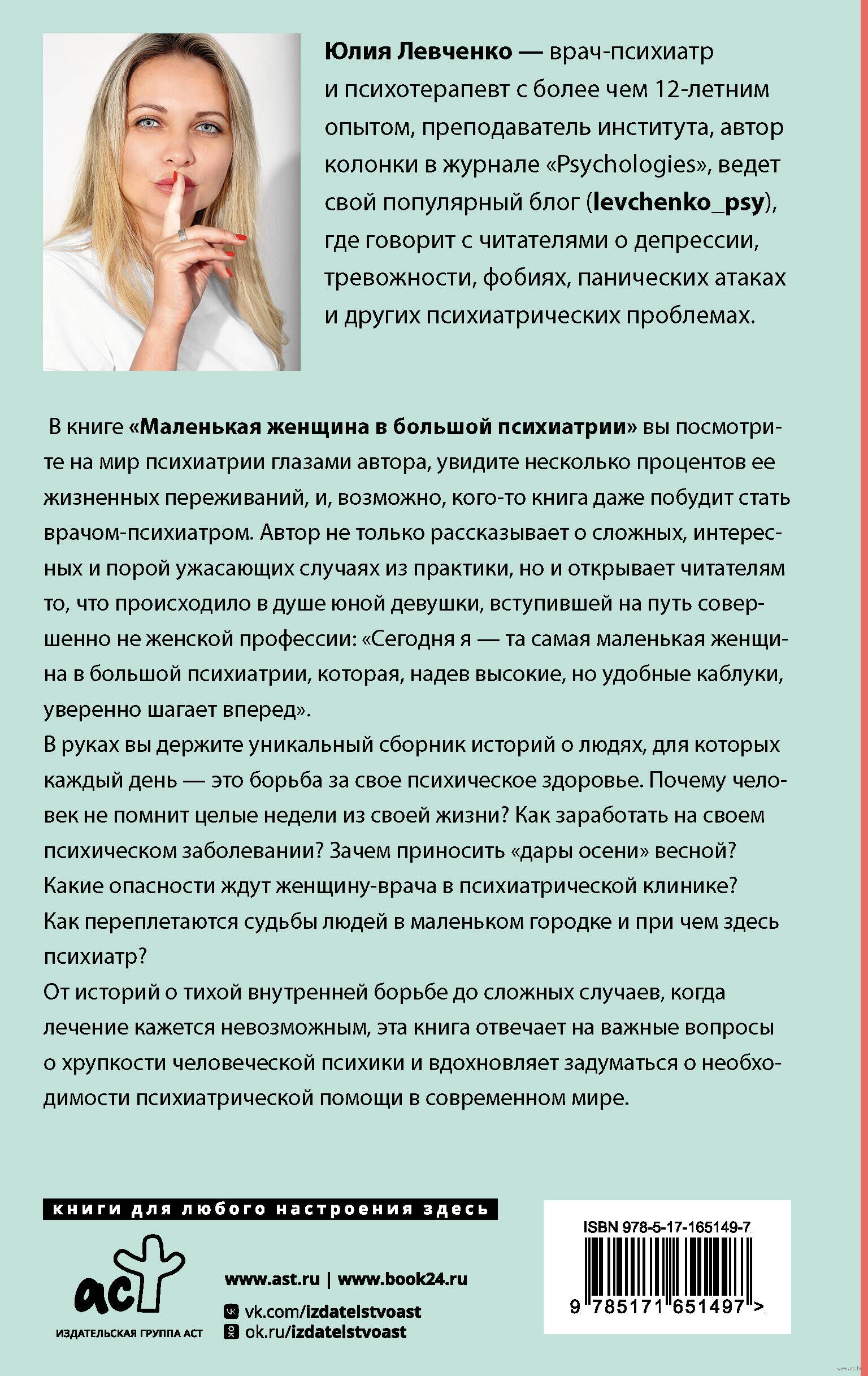 В книге "Маленькая женщина в большой психиатрии" вы посмотрите на мир психиатрии глазами автора, увидите несколько процентов ее жизненных переживаний, и, возможно, кого-то книга даже побудит стать врачом-психиатром. Автор не только рассказывает о сложных, интересных и порой ужасающих случаях из практики, но и открывает читателям то, что происходило в душе юной девушки, вступившей на путь совершенно неженской профессии: "Сегодня я – та самая маленькая женщина в большой психиатрии, которая, надев высокие, но удобные каблуки, уверенно шагает вперед".