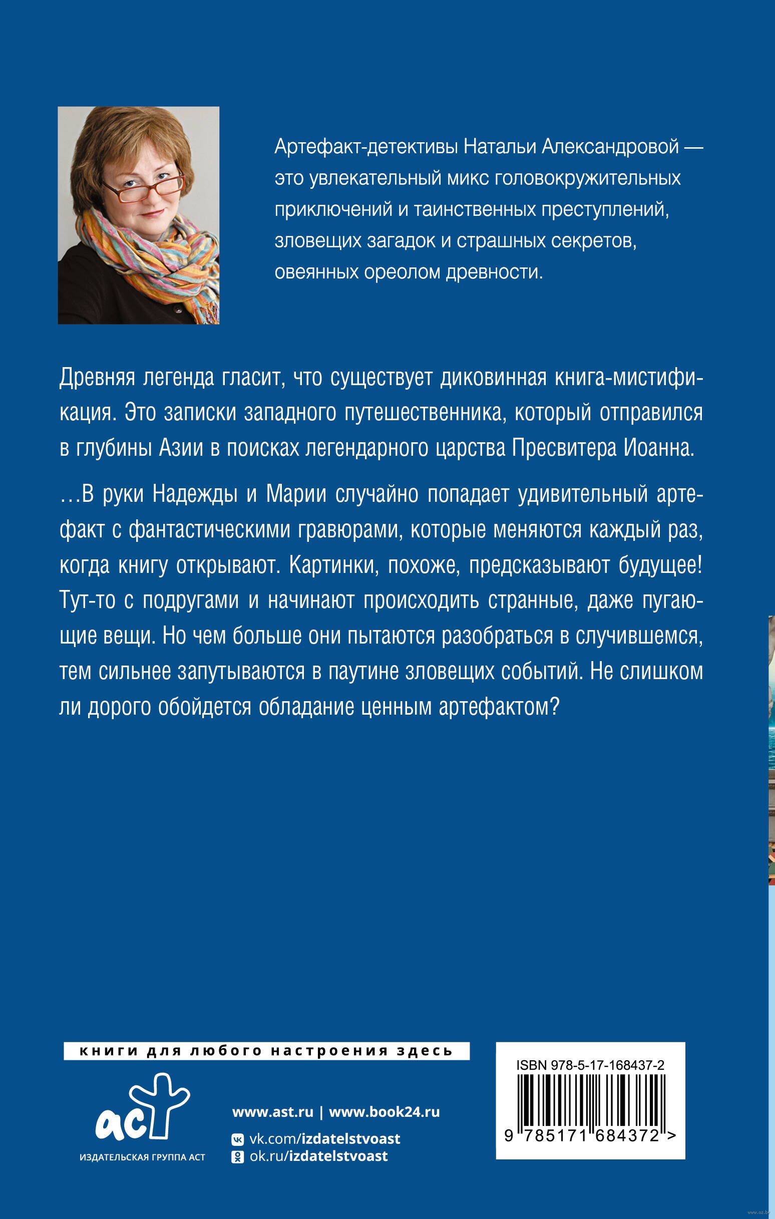 ...В руки Надежды и Марии случайно попадает удивительный артефакт с фантастическими гравюрами, которые меняются каждый раз, когда книгу открывают. Картинки, похоже, предсказывают будущее! Тут-то с подругами и начинают происходить странные, даже пугающие вещи. Но чем больше они пытаются разобраться в случившемся, тем сильнее запутываются в паутине зловещих событий. Не слишком ли дорого обойдется обладание ценным артефактом?