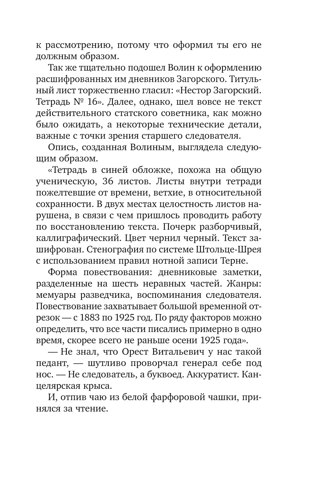 Новая порция дневников Нестора Васильевича Загорского – это небольшие истории из жизни действительного статского советника, большинство из которых повествует о международном шпионаже перед Первой мировой войной и во время нее.