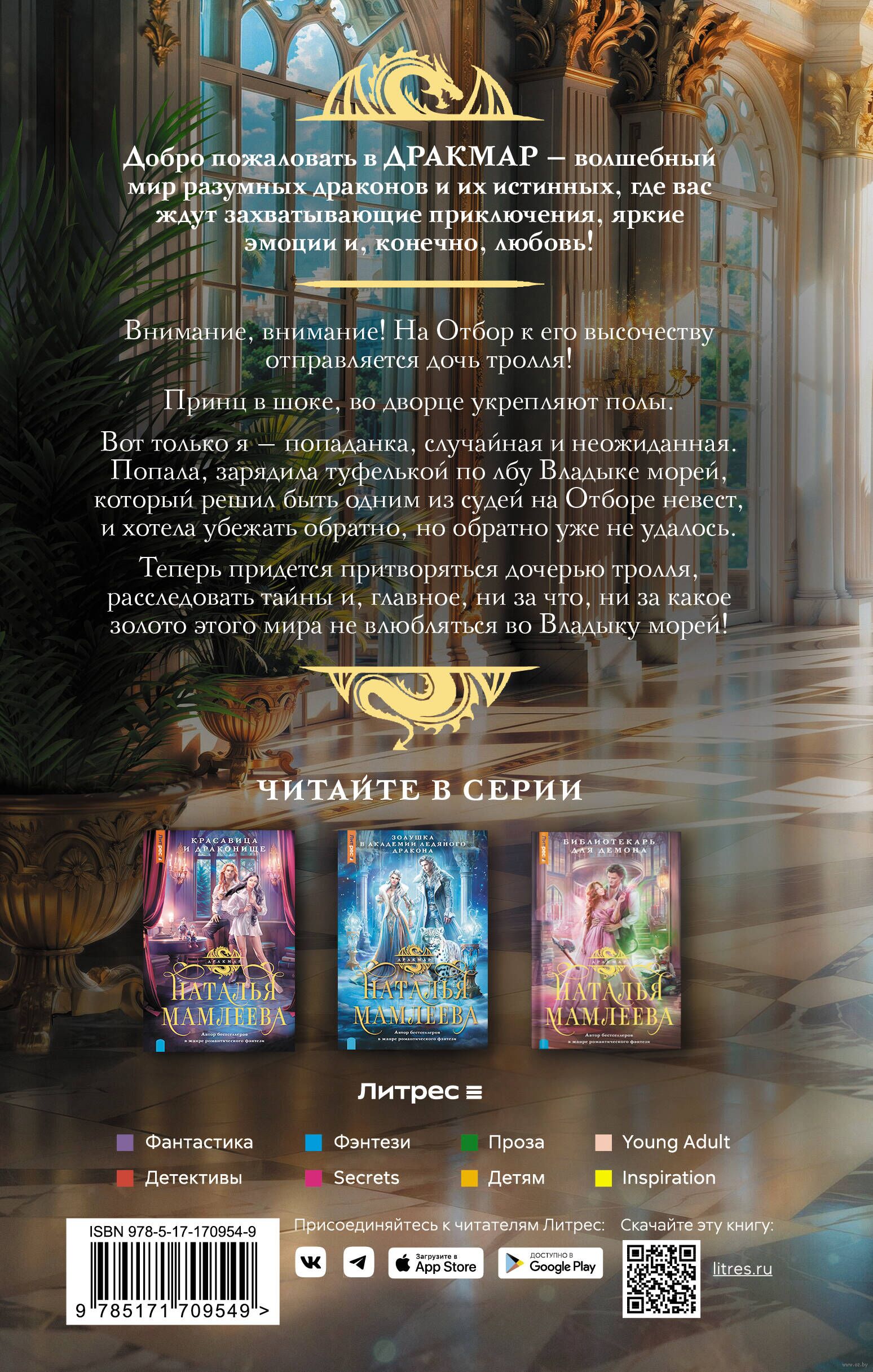 Принц в шоке, во дворце укрепляют полы. Вот только я – попаданка, случайная и неожиданная. Попала, зарядила туфелькой по лбу Владыке морей, который решил быть одним из судей на Отборе невест, и хотела убежать обратно, но обратно уже не удалось. Теперь придется притворяться дочерью тролля, расследовать тайны, а главное, ни за что, ни за какое золото этого мира не влюбляться во владыку морей!