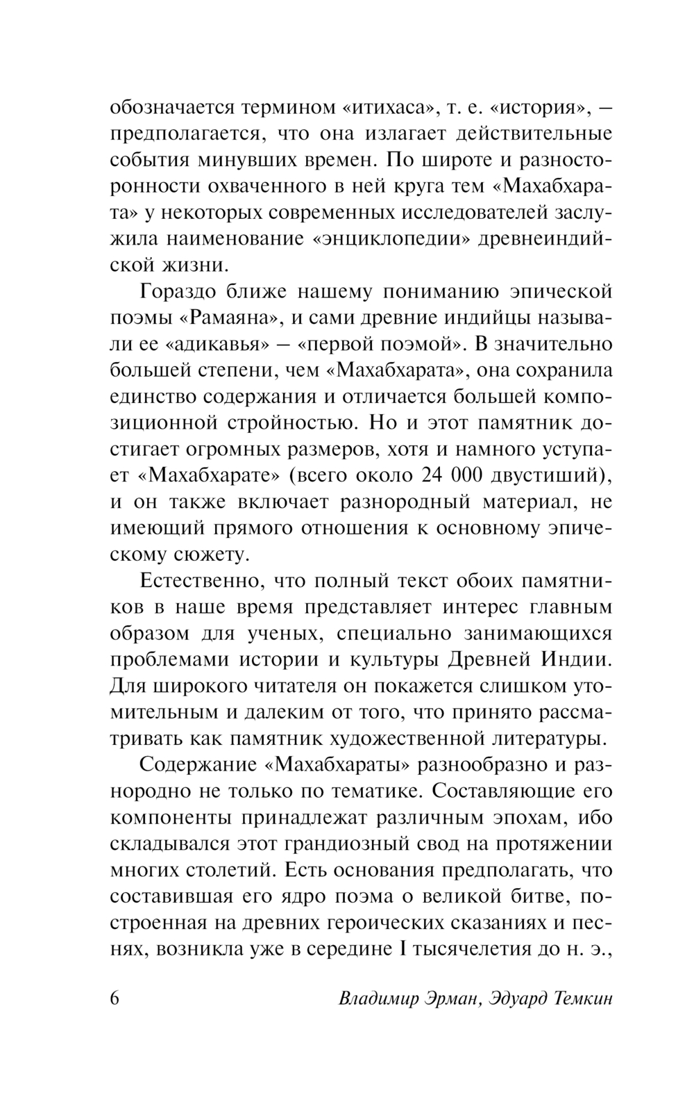 Полный перевод древнеиндийского эпоса на русский язык – дело далекого будущего. Данное популярное изложение великого индийского эпического цикла "Махабхарата" на русском языке подготовлено учеными-индологами В. Эрманом и Э. Темкиным.