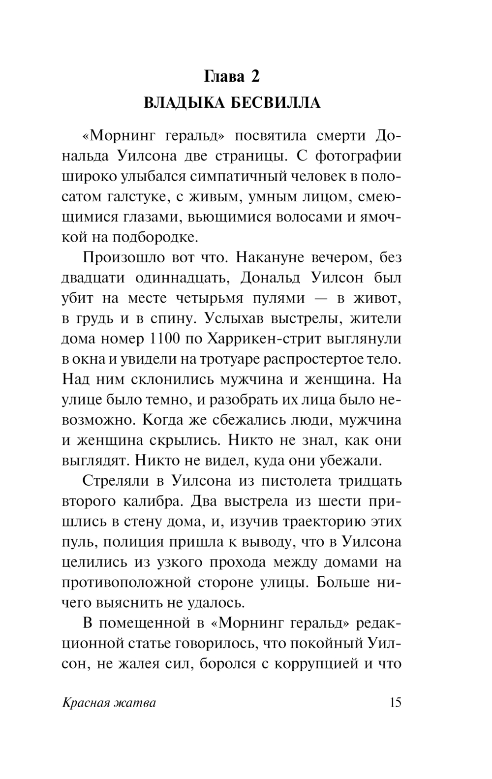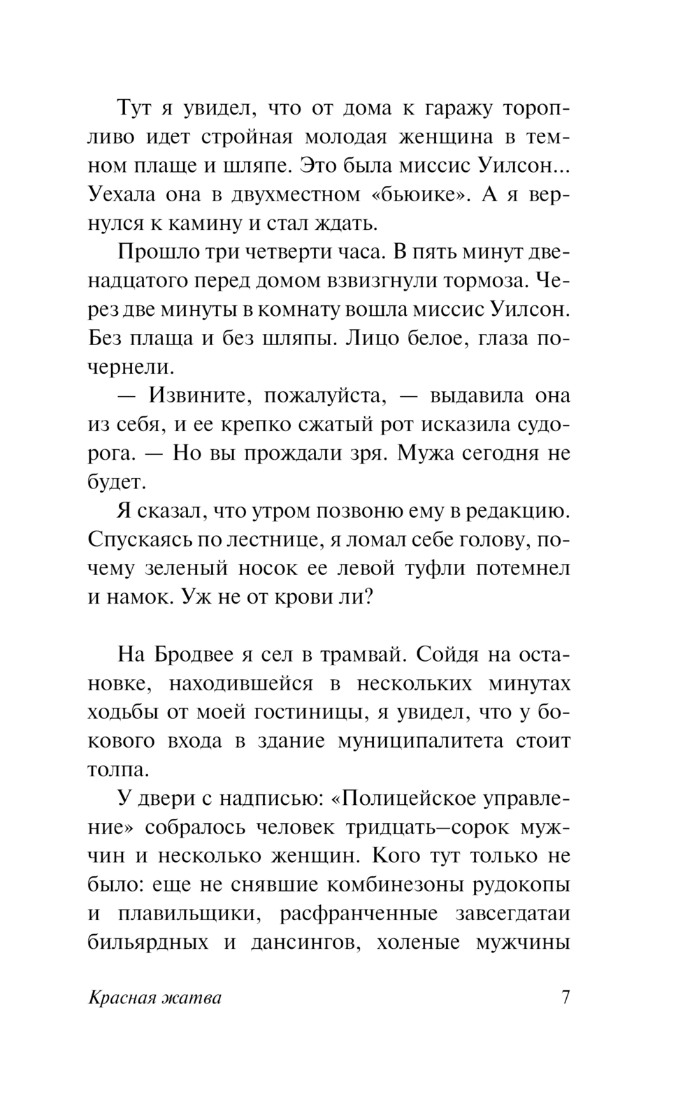 "Красная жатва" – это ранний роман Дэшила Хэммета, написанный в стиле нуар-детектив. Главный герой – сотрудник детективного агентства "Континенталь", прибывший в город Берсвилл по просьбе издателя местной газеты Уилсона. Но, найдя последнего мертвым, частный детектив решает остаться и навести порядок в этом прогнившем городе и очистить его от криминала.