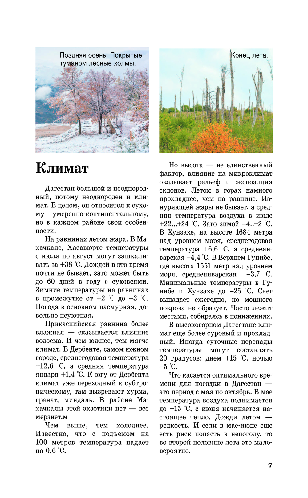 Проверенные маршруты прогулок от опытного путешественника! Знакомство с городами и окрестностями Дагестана. Уникальные и удивительные горные хребты и плато, ущелья и водопады, реки и озера. Древние города и поселки, прочитав о которых, вы узнаете многое об истории и традициях жителей страны. Открытия ждут вас с первых строк этой книги – история, традиции и достопримечательности. Схемы, размещенные в книге, позволят вам лучше ориентироваться и помогут выбрать удобный маршрут. Наш путеводитель – ваш отличный отдых!