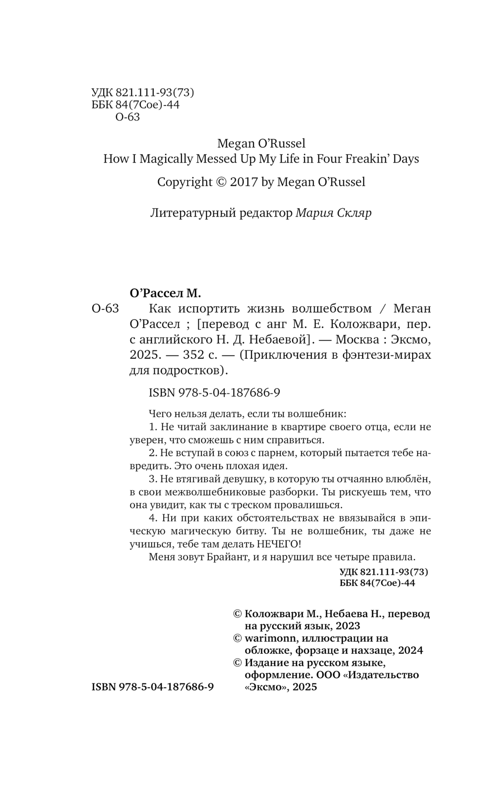 | Название в оригинале | How I Magically Messed Up My Life in Four Freak-in' Days by Megan O'Russel |