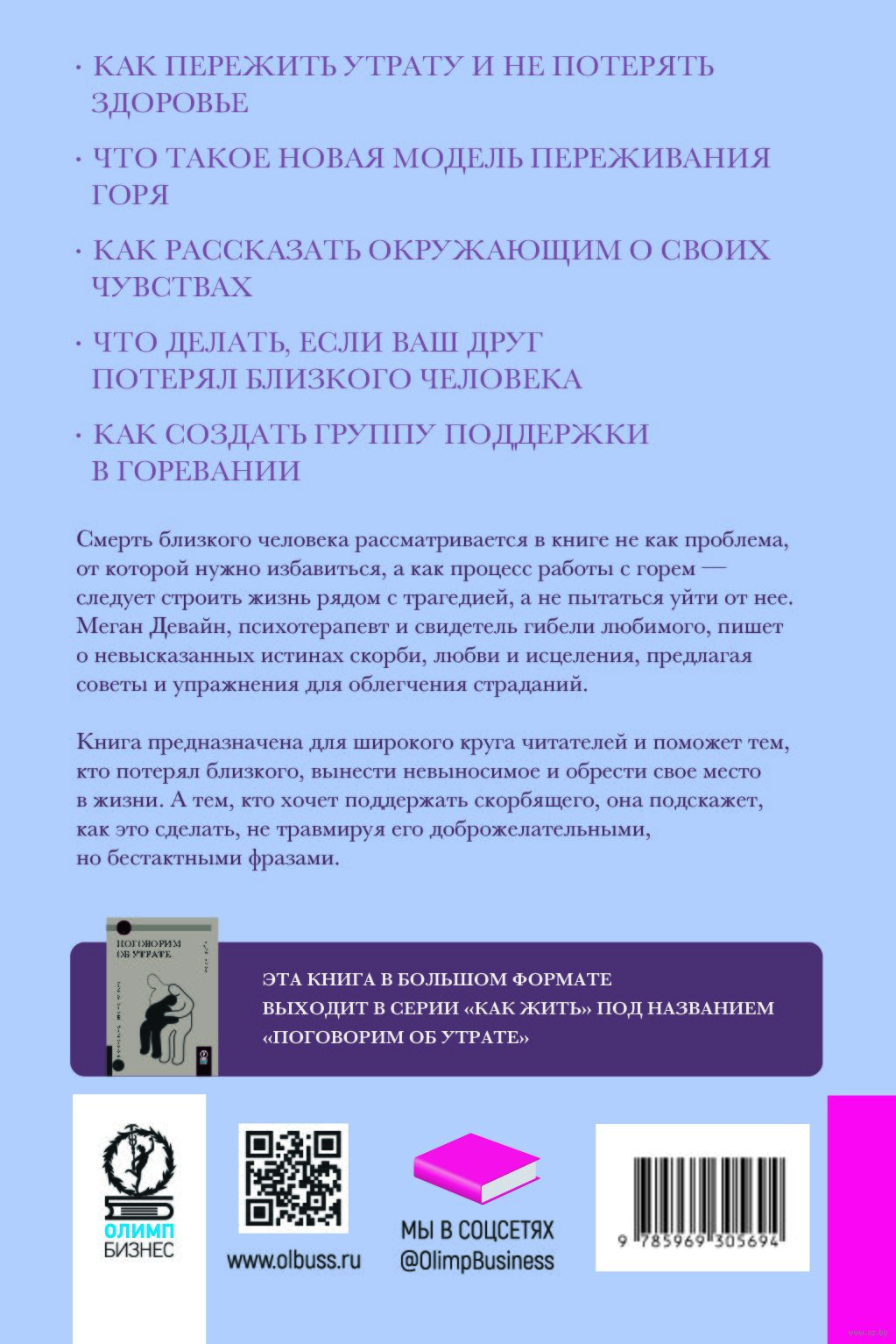 Книга предназначена для широкого круга читателей и поможет тем, кто потерял близкого, вынести невыносимое и обрести свое место в жизни. А тем, кто хочет поддержать скорбящего, она подскажет, как это сделать, не травмируя его доброжелательными, но бестактными фразами.
