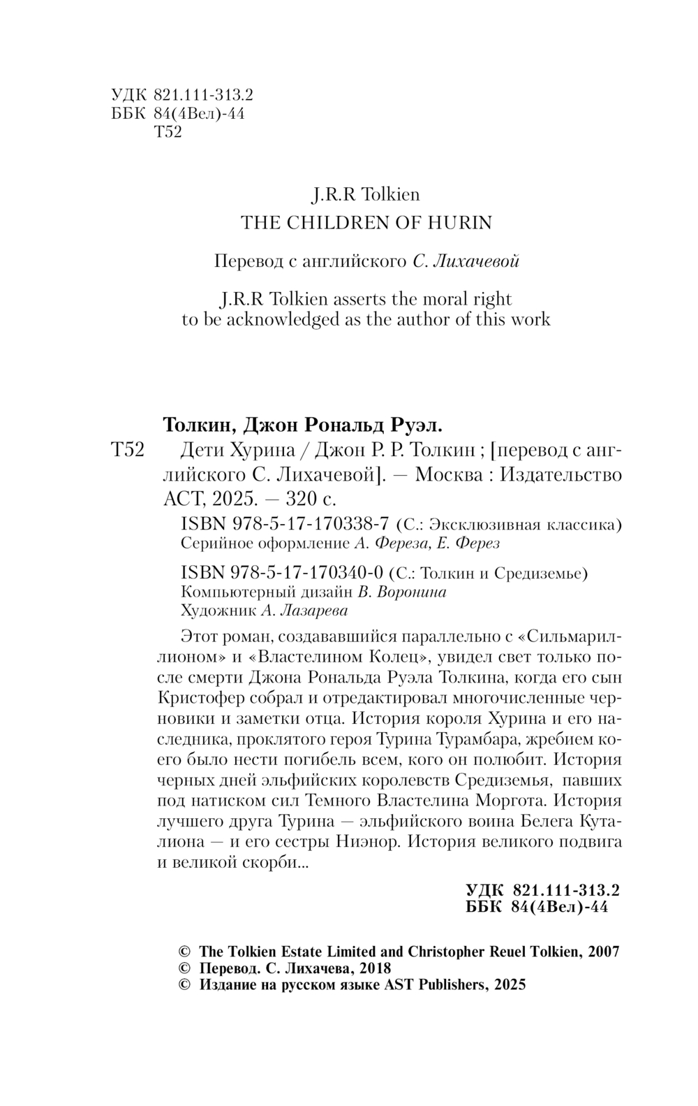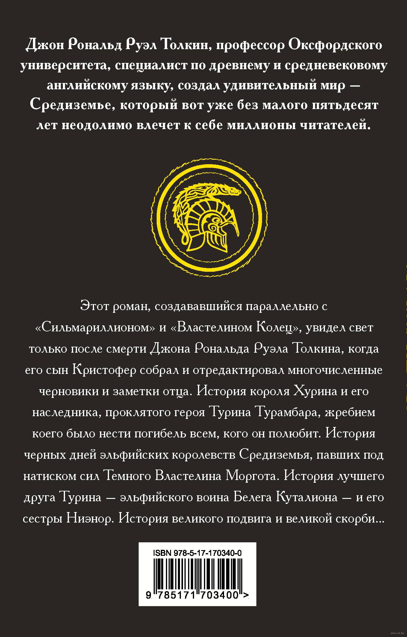Этот роман, создававшийся параллельно с "Сильмариллионом" и "Властелином Колец", увидел свет только после смерти Джона Рональда Руэла Толкина, когда его сын Кристофер собрал и отредактировал многочисленные черновики и заметки отца. История короля Хурина и его наследника, проклятого героя Турина Турамбара, жребием коего было нести погибель всем, кого он полюбит. История черных дней эльфийских королевств Средиземья, павших под натиском сил Темного Властелина Моргота. История лучшего друга Турина – эльфийского воина Белега Куталиона – и его сестры Ниэнор. История великого подвига и великой скорби...