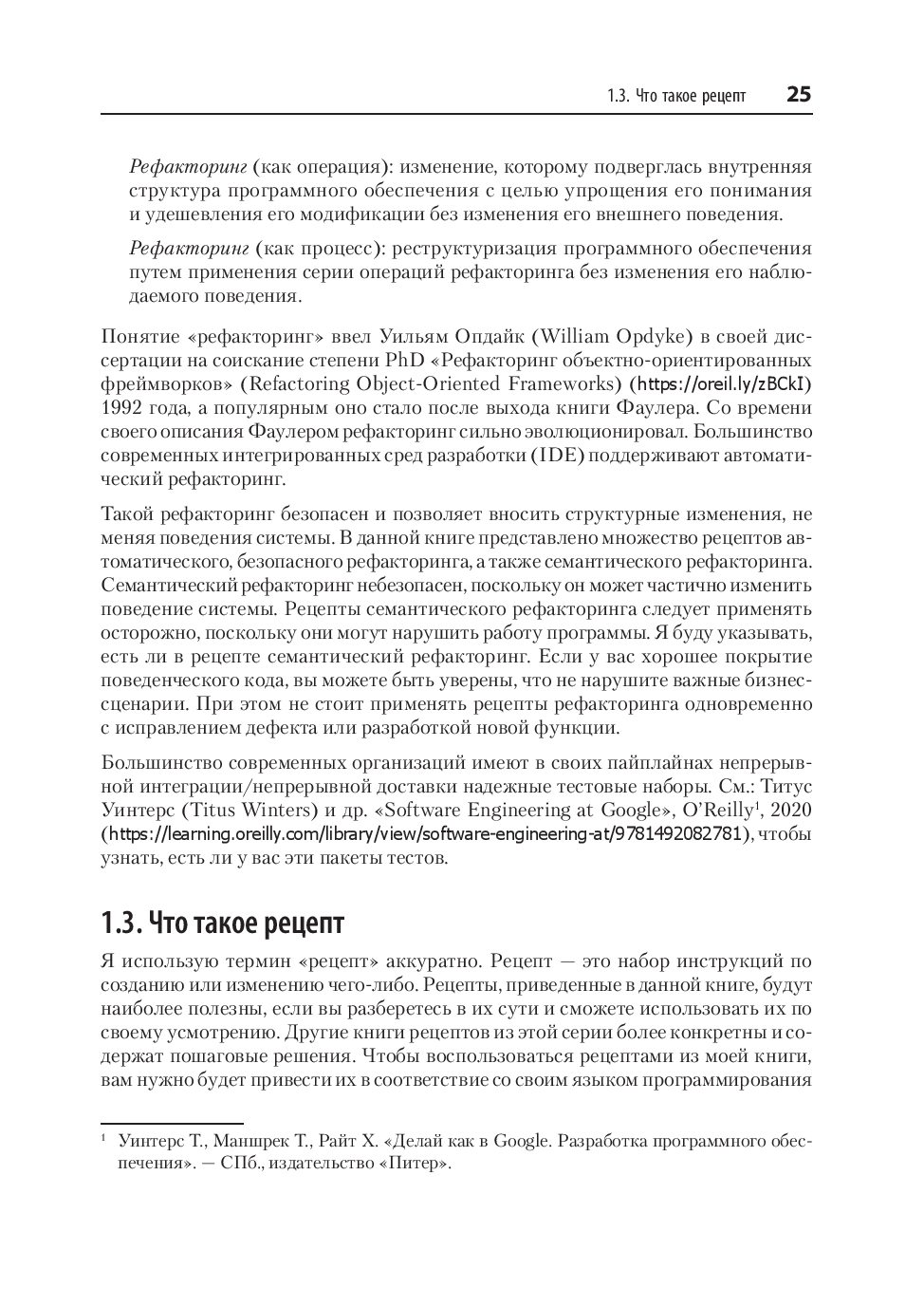 Проверенные рецепты на JavaScript, PHP, Python, Java и других языках программирования помогут масштабировать и поддерживать большие системы. В каждом разделе рассматриваются такие фундаментальные понятия, как читаемость кода, связанность, тестируемость, безопасность и расширяемость, а также запахи кода и соответствующие рецепты их устранения.