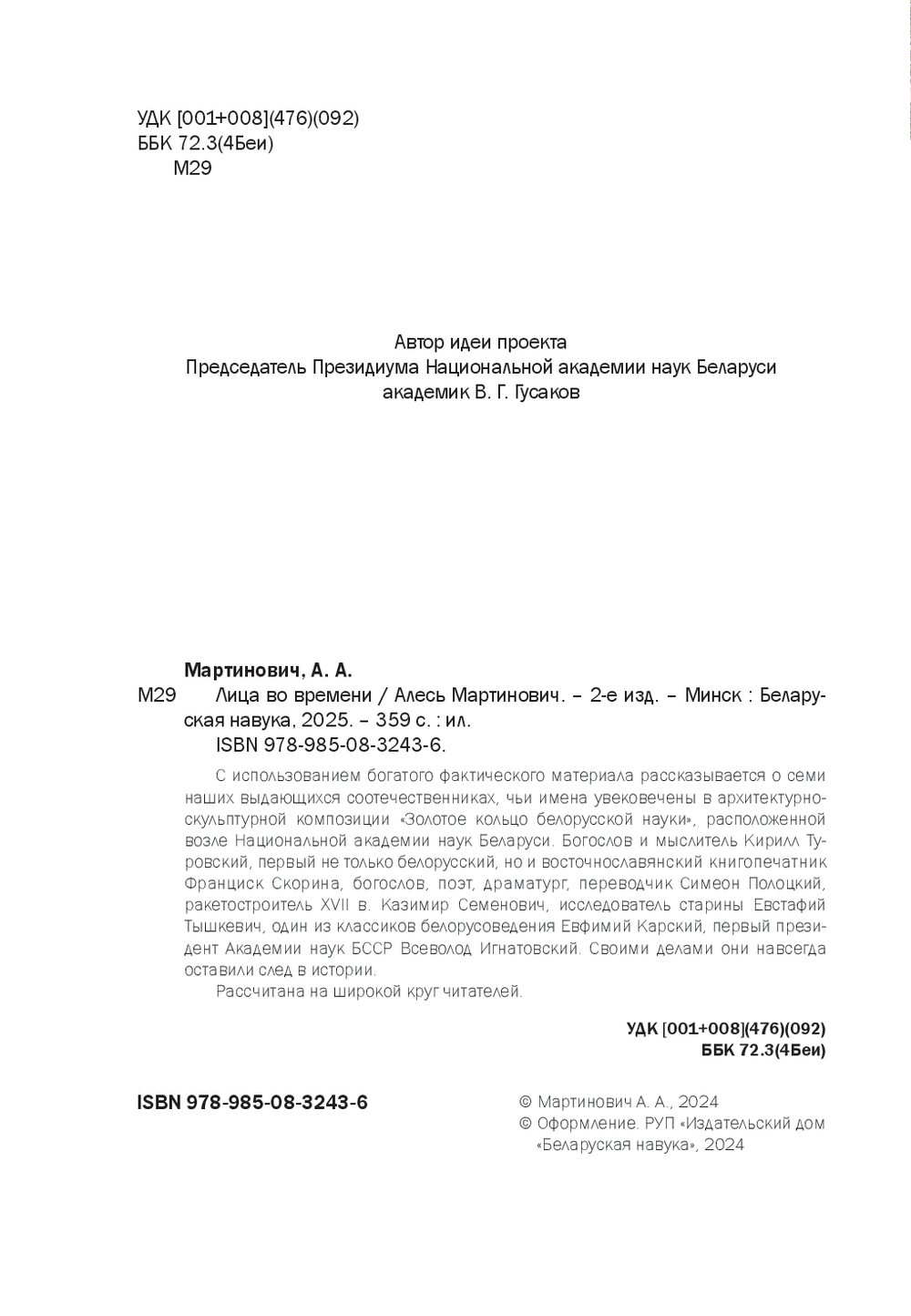 С использованием богатого фактического материала рассказывается о семи наших выдающихся соотечественниках, чьи имена увековечены в архитектурно-скульптурной композиции "Золотое кольцо белорусской науки", расположенной возле Национальной академии наук Беларуси. Богослов и мыслитель Кирилл Туровский, первый не только белорусский, но и восточнославянский книгопечатник Франциск Скорина, богослов, поэт, драматург, переводчик Симеон Полоцкий, ракетостроитель XVII в. Казимир Семенович, исследователь старины Евстафий Тышкевич, один из классиков белорусоведения Евфимий Карский, первый президент Академии наук БССР Всеволод Игнатовский. Своими делами они навсегда оставили след в истории.