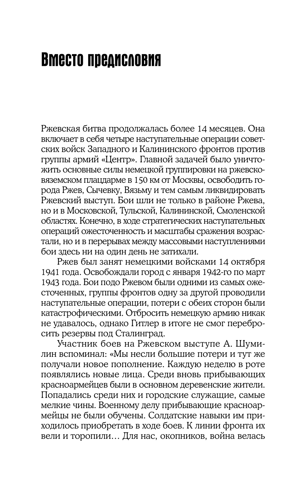 Кровопролитная и беспощадная. Ржевская битва – одно из важнейших сражений Великой Отечественной войны. Именно здесь, на Ржевско-Вяземском выступе, могла решиться судьба всей операции Восточного фронта. Немецкие войска сражались отчаянно и упорно, пользуясь преимуществами наступления. Но даже в условиях холода, голода и болезней, несмотря на огромные потери, Советская армия продолжала упорно сдерживать противника. Победа подо Ржевом – яркий символ мужества и решительности, навсегда сохранившийся в сердцах людей.