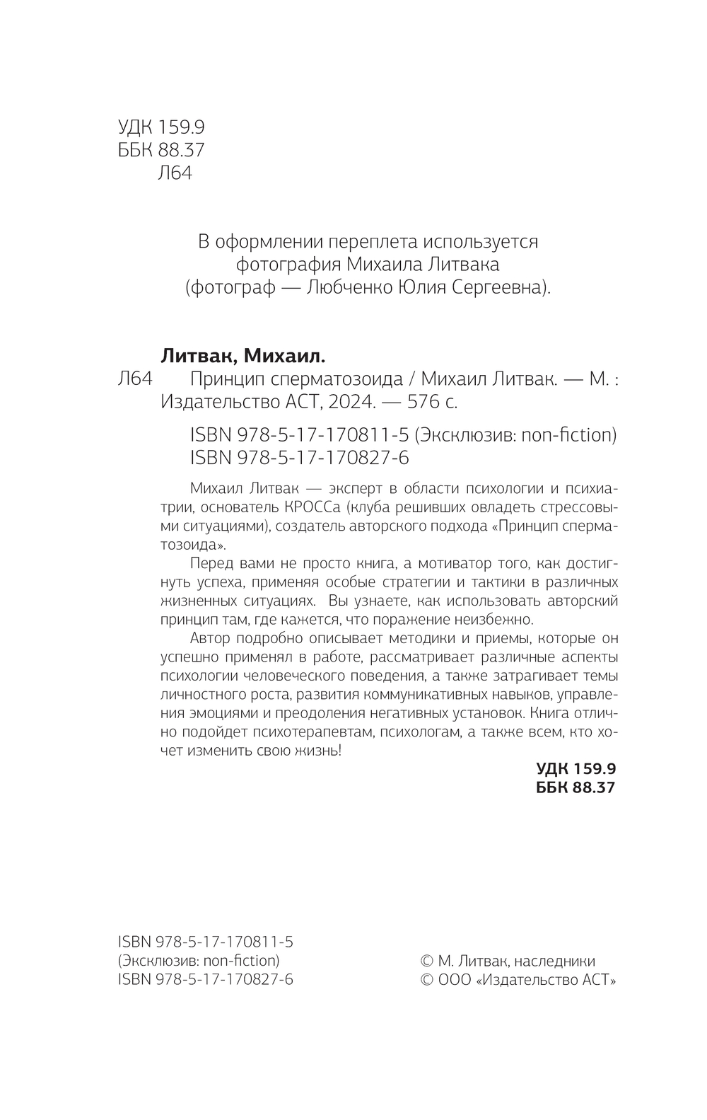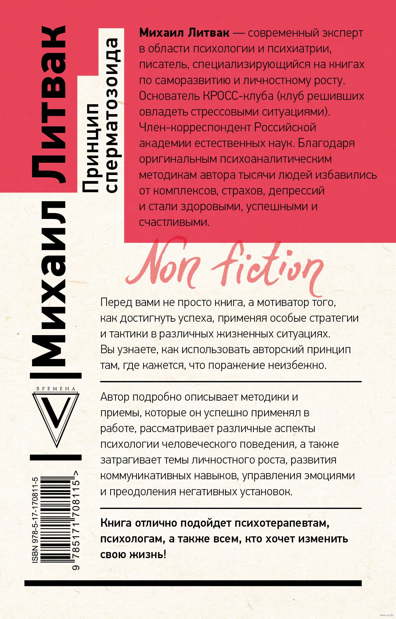 Михаил Литвак – современный эксперт в области психологии и психиатрии, писатель, специализирующийся на книгах по саморазвитию и личностному росту. Основатель КРОСС-клуба (клуб решивших овладеть стрессовыми ситуациями). Член-корреспондент Российской академии естественных наук, психотерапевт европейского реестра. Благодаря оригинальным психоаналитическим методикам автора тысячи людей избавились от комплексов, страхов, депрессий и стали здоровыми, успешными и счастливыми.