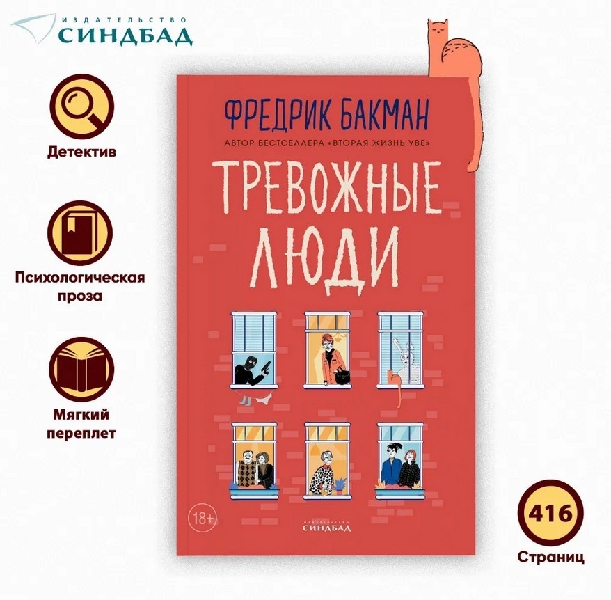 Остросюжетная проза с узнаваемой иронией и легким шведским юмором ждет читателей в романе Фредрика Бакмана "Тревожные люди". Эта своеобразная комедия об ограблении, которое так и не случилось. Неудачливый преступник перепутал банк и оказался в квартире, выставленной на продажу. Помимо всего прочего, внутри его ждали восемь посетителей – потенциальные покупатели, пришедшие на просмотр, и риелтор. Встревоженные незнакомцы, оказавшиеся в заложниках, обнаруживают, что у них гораздо больше общего, чем они думали сначала.