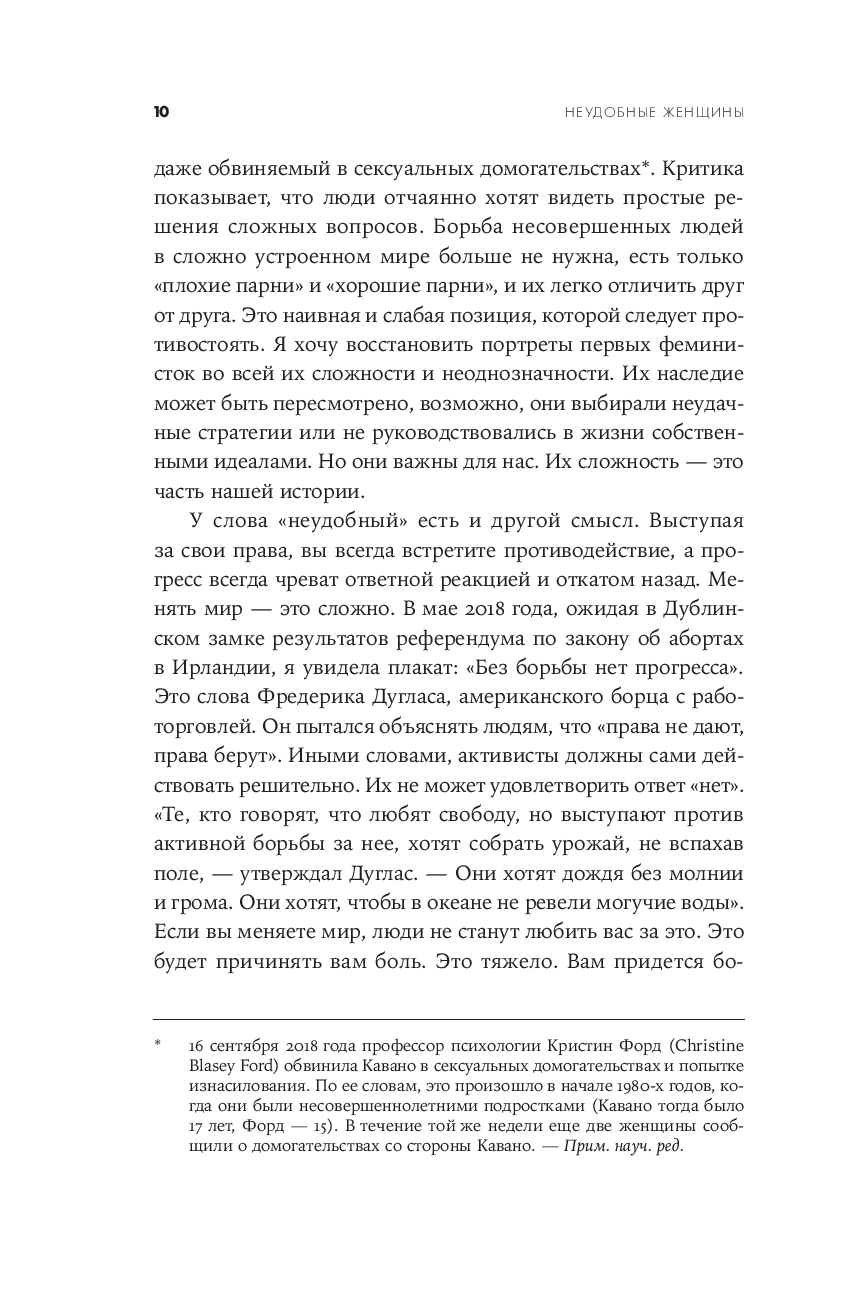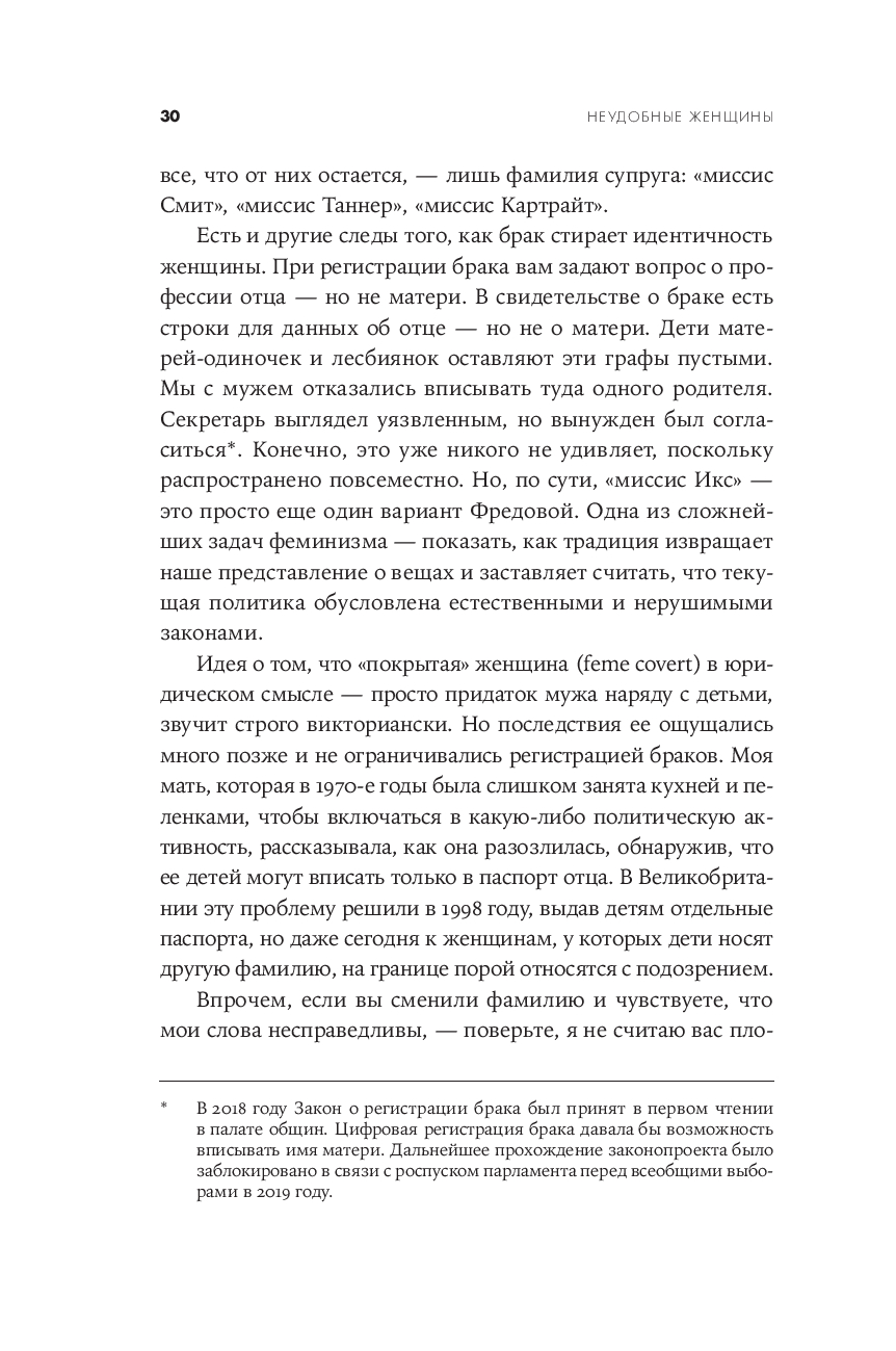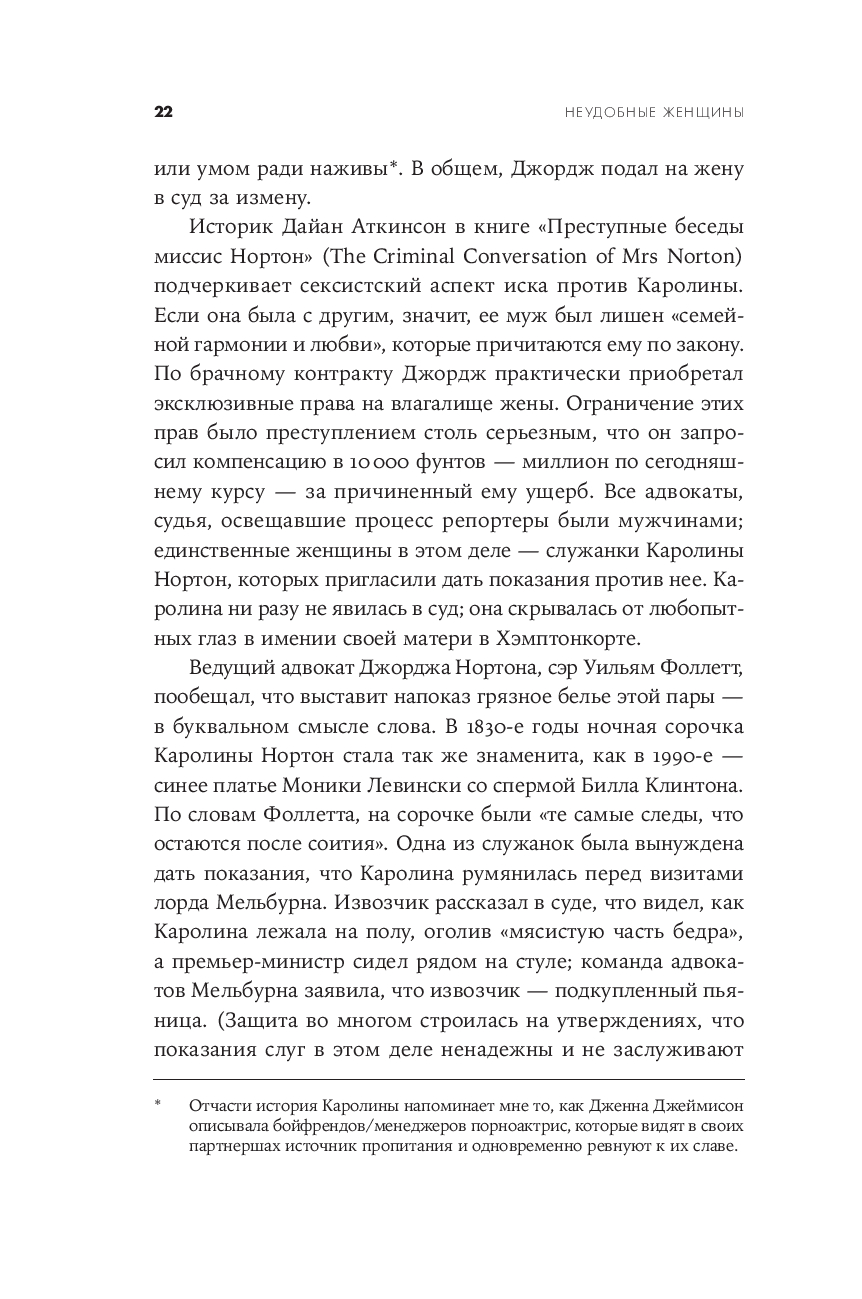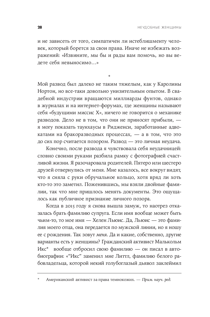 Патриархальная культура веками навязывала женщине идеалы кротости, жертвенного служения и смирения, роль домашнего ангела и необходимость быть "милой". Героинь Хелен Льюис милыми не назовешь. Их имена были связаны со скандалами. Сложные, нетерпимые, неудобные, порой агрессивные, порой смешные – оригиналки, чудачки, выскочки, они с предельной прямотой озвучивали проблемы и показывали аномальность привычного, ломали стереотипы и заставляли общество пересматривать гендерные установки, меняли уклад, правовые нормы и государственные институты – в интересах всех остальных. Благодаря им женщины обрели те права, которыми, порой даже не задумываясь, пользуются сейчас: право распоряжаться своим телом и голосом, своим временем и доходами, право ошибаться и исправлять ошибки. Полная ярких и точных политических наблюдений, одновременно забавных и информативных, эта книга – трезвая, горькая, веселая и бесстрашная история феминизма, его побед и провалов и манифест всех тех женщин, которые не готовы быть "удобными".