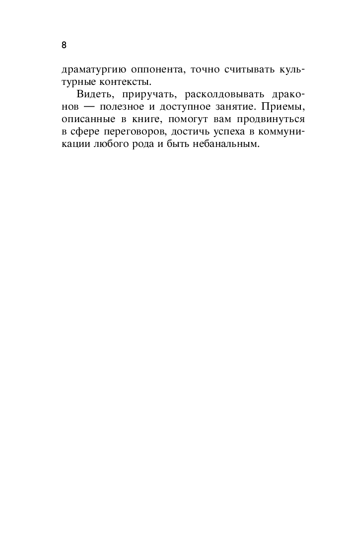 Вся наша жизнь – переговоры. С супругом, с мамой, с менеджером ресторана, с соседом по парковке. "Драконы" – это они, наши контрпереговорщики. Огнедышащие и стерегущие свое золото. Одетые в непробиваемую стальную чешую. Имеющие много голов, с каждой из которых приходится вести отдельные переговоры.