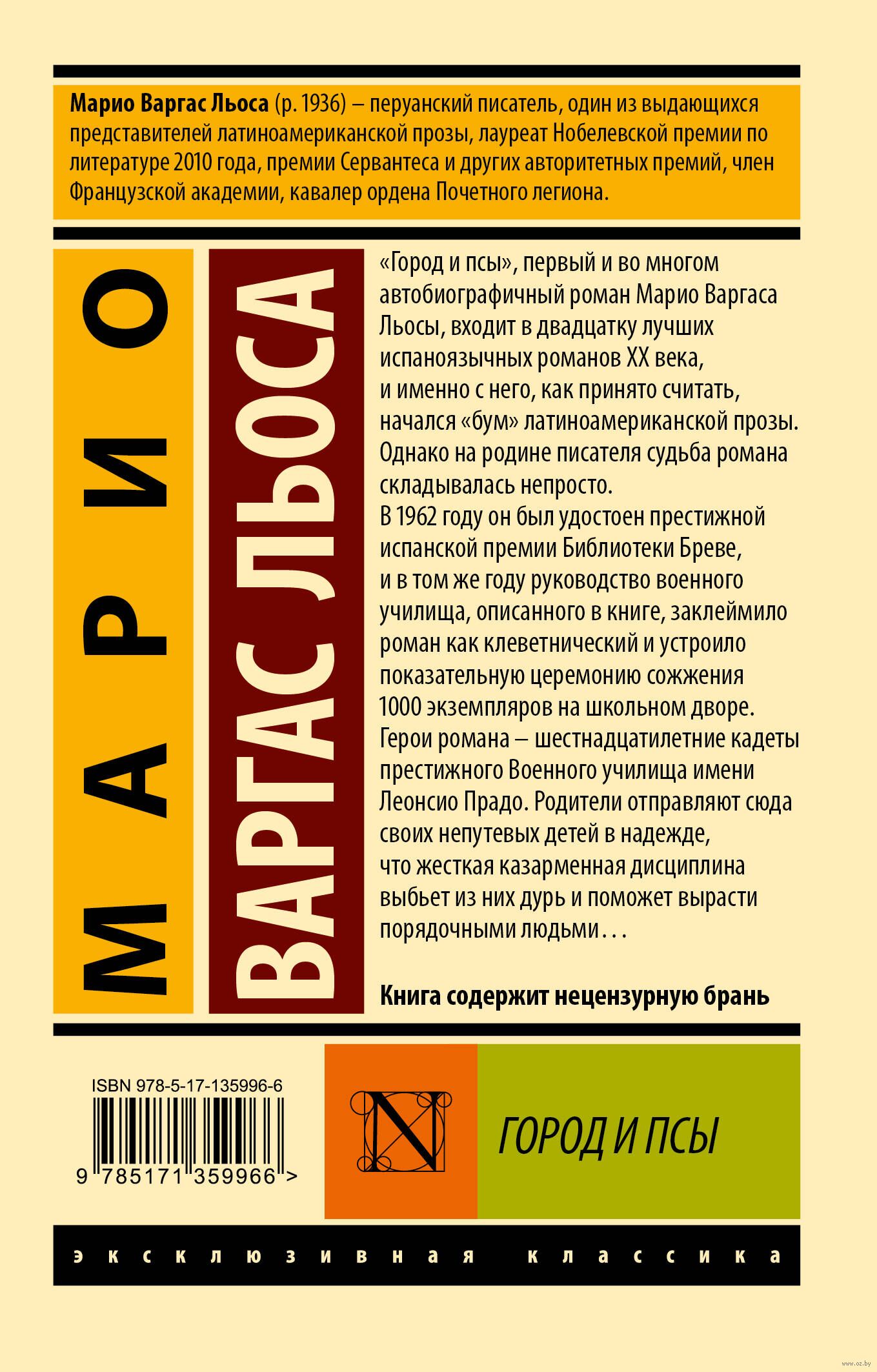 "Город и псы", первый и во многом автобиографичный роман Марио Варгаса Льосы, входит в двадцатку лучших испаноязычных романов ХХ века, и именно с него, как принято считать, начался "бум" латиноамериканской прозы. Однако на родине писателя судьба романа складывалась непросто. В 1962 году он был удостоен престижной испанской премии Библиотеки Бреве, и в том же году руководство военного училища, описанного в книге, заклеймило роман как клеветнический и устроило показательную церемонию сожжения 1000 экземпляров на школьном дворе.