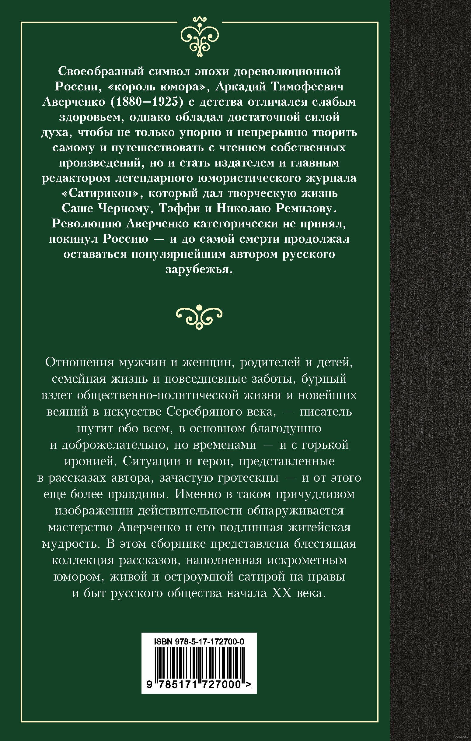 В этом сборнике представлена блестящая коллекция рассказов, наполненная искрометным юмором, живой и остроумной сатирой на нравы и быт русского общества начала ХХ века.