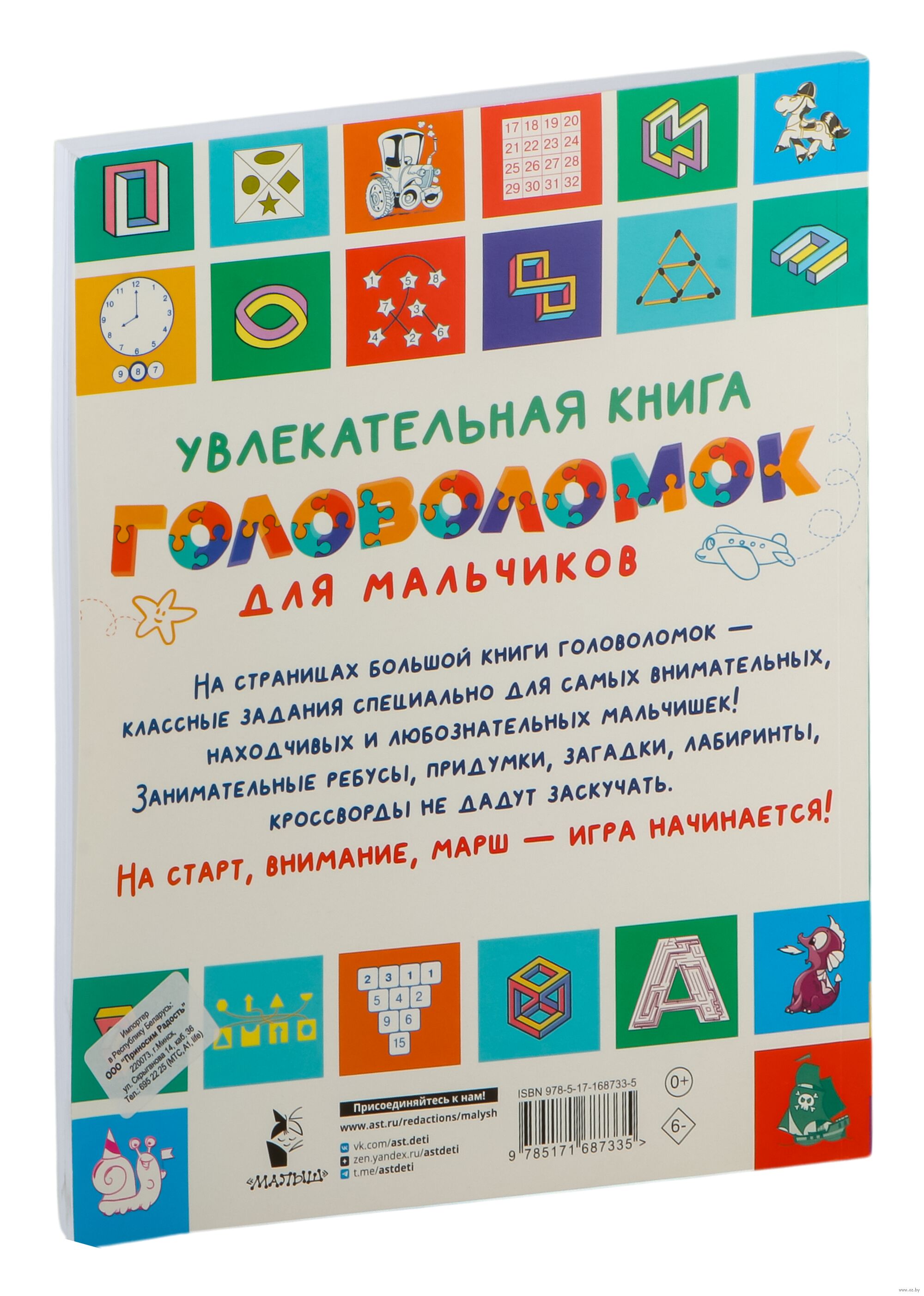 На страницах "Увлекательной книги головоломок для мальчиков" ребята найдут множество занимательных заданий: ребусов, лабиринтов, картинок с отличиями, игр с буквами и словами, логических задачек. Головоломки, собранные в книге, позволят детям развить мышление, потренировать логику и внимание, память и воображение.