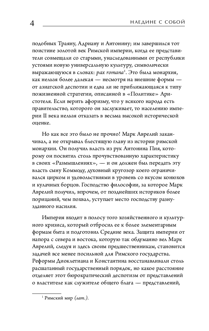 "Наедине с собой" Марка Аврелия – книга номер один для тех, кто хочет разобраться в философии стоицизма. Это сборник афористических мыслей римского императора, который рассказывает о том, как твердо и мужественно переносить жизненные испытания.