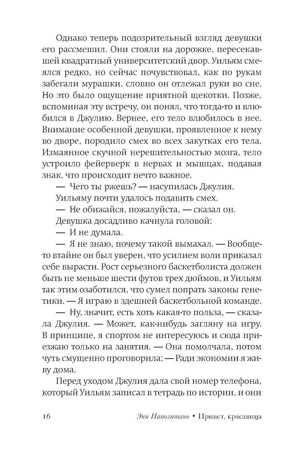 "Привет, красавица" – роман о том, способна ли любовь возродить сломленного человека, может ли она противостоять уязвленному самолюбию, отчуждению, предательству, нежеланию понять и простить. Очень мощная и в то же время щемяще нежная история, в которой нет правых и неправых, а есть только жизнь во всех ее удивительных проявлениях.