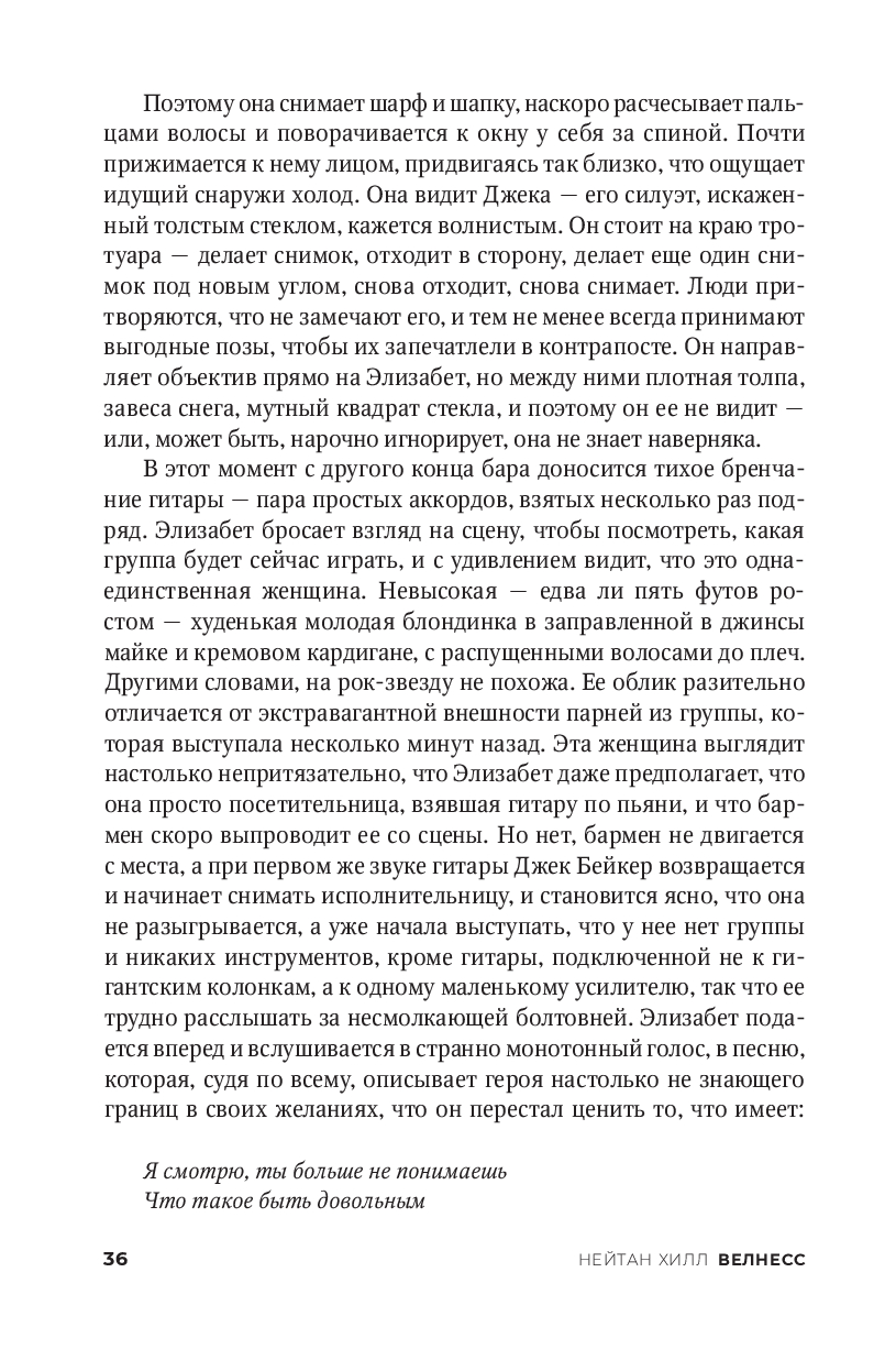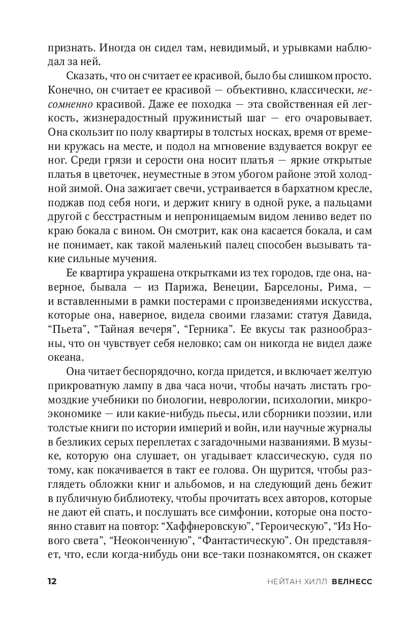 Пронзительный и остроумный роман о браке и связях, которые удерживают людей вместе. Разбирая нелепости современного общества, «Велнесс» иронично и трогательно переосмысливает классическую историю любви. Как и что люди рассказывают о себе, о своих чувствах, о своих отношениях? Это одновременно и очень смешная, и почти душераздирающая книга, и определенно – по-настоящему умная и глубокая.