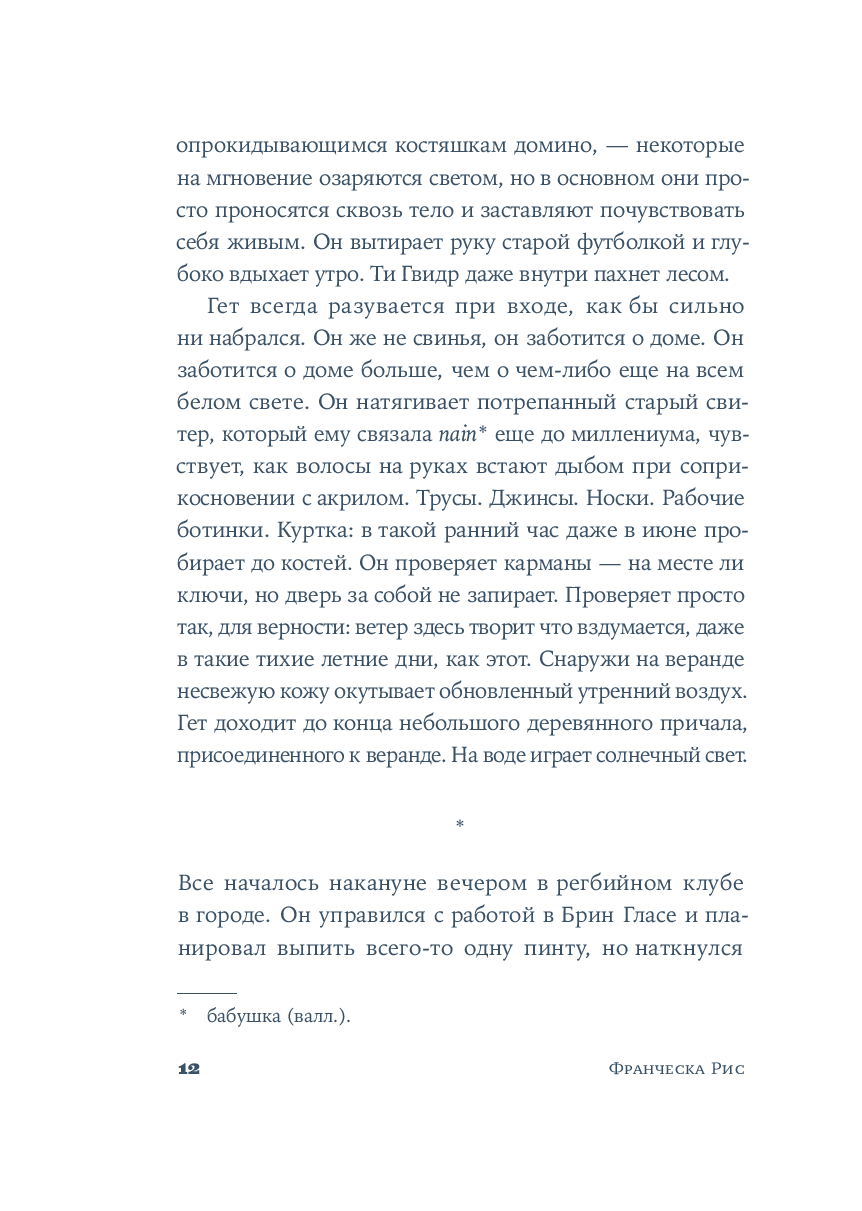 В своей прозе Франческа Рис, автор бестселлера "Наблюдатель", исследует влияние политических событий на жизнь обычных людей, мастерски переплетая личную драму и исторический конфликт. Северный Уэльс предстает перед читателем во всей своей красоте и сложности, а история Гетина и Олуэн становится путешествием в глубину человеческих чувств, разбуженных эхом прошлого.