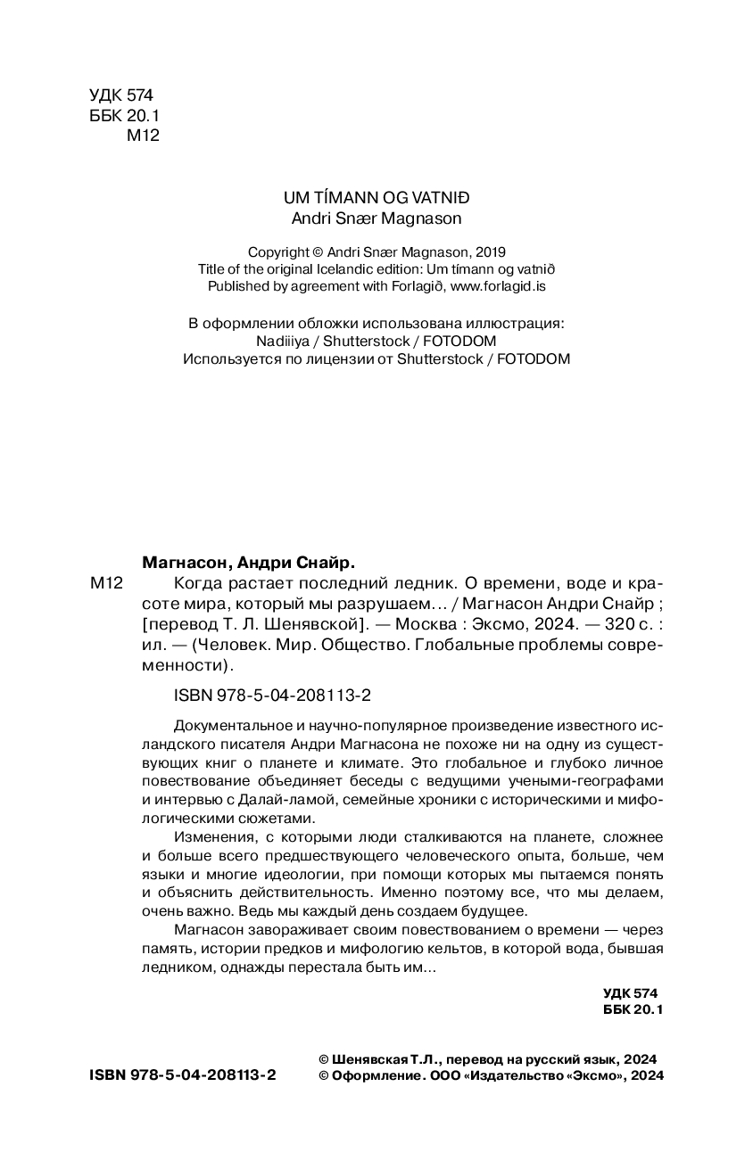Документальное и научно-популярное произведение известного исландского писателя Андри Магнасона не похоже ни на одну из существующих книг о планете и климате. Это глобальное и глубоко личное повествование объединяет беседы с ведущими учеными-географами и интервью с Далай-ламой, семейные хроники с историческими и мифологическими сюжетами.