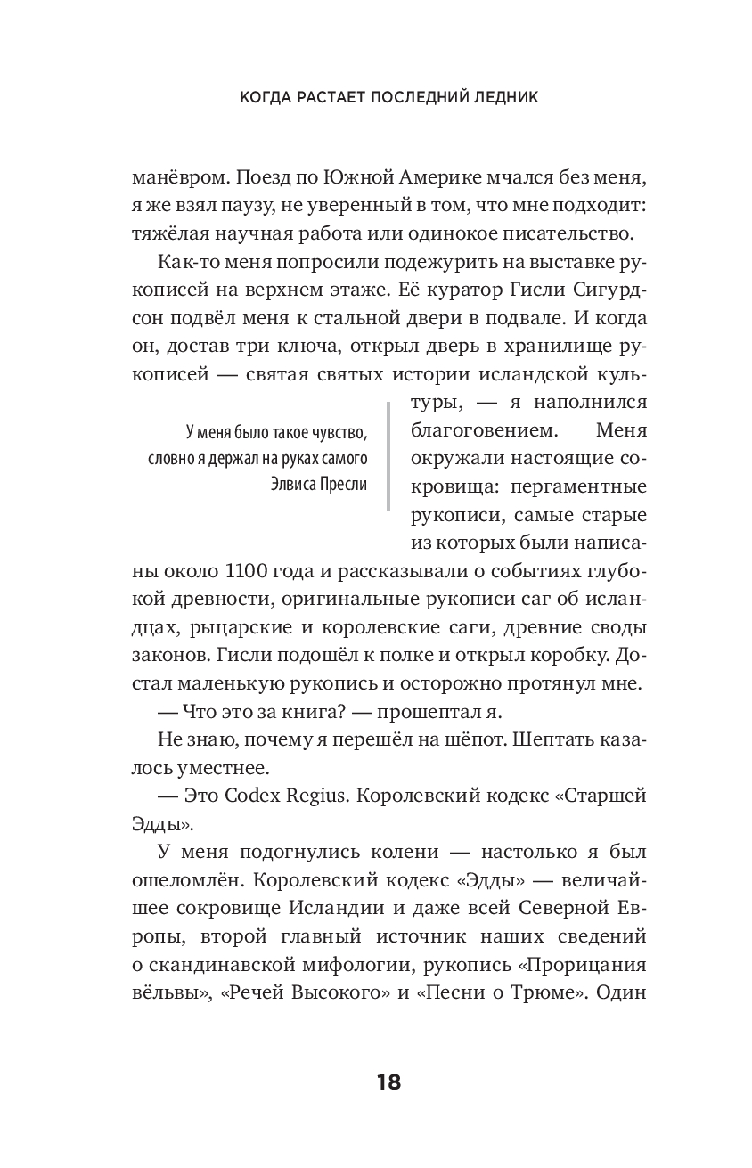 Магнасон завораживает своим повествованием о времени – через память, истории предков и мифологию кельтов, в которой вода, бывшая ледником, однажды перестала быть им....