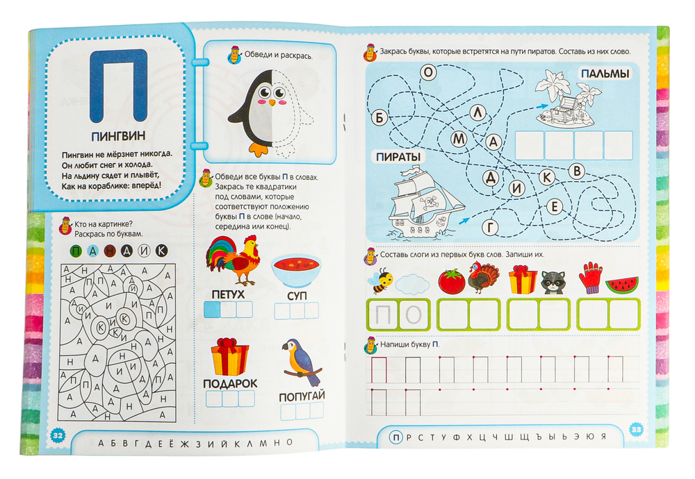 Развивающая тетрадь позволит детям в увлекательной форме познакомиться с алфавитом, научиться узнавать буквы в слове, составлять слоги, читать простые слова. Разнообразные виды заданий направлены на развитие креативности, памяти, логического мышления и воображения.