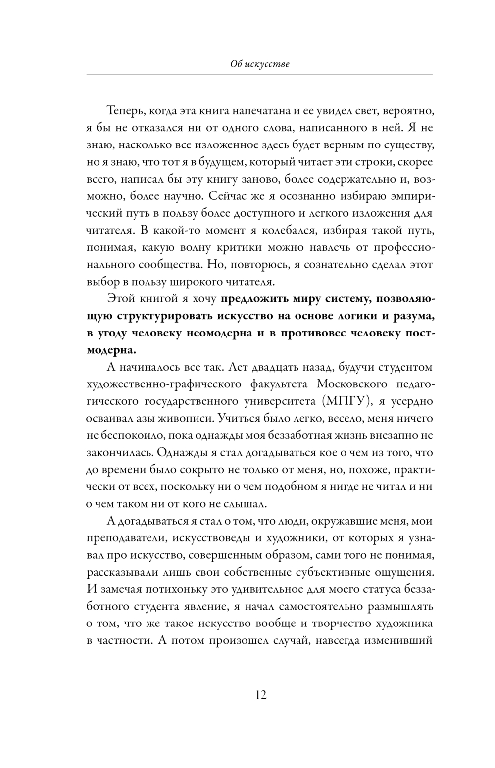 Эта книга отвечает на главный вопрос: что есть искусство? Автор бросает вызов устоявшимся взглядам идеологов и популяризаторов искусства, раскрывая новый подход.