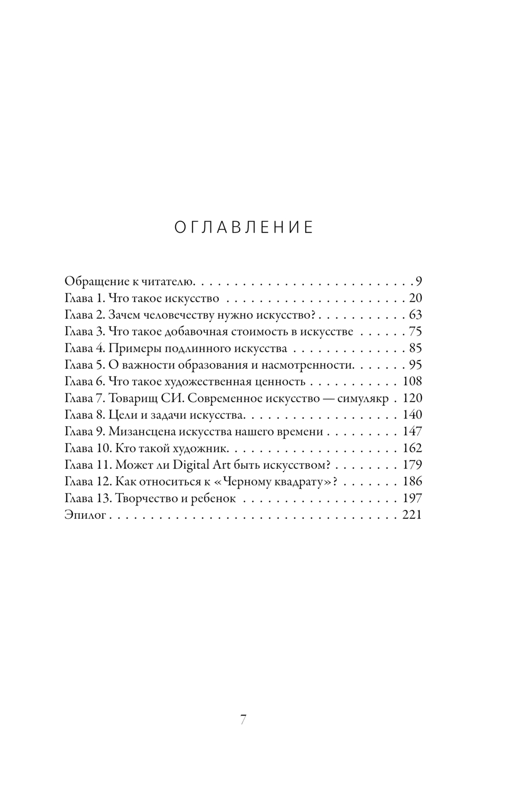 Издание подходит не только для новичков, но и для тех, кто хочет углубиться в тонкости искусства, понять его изнутри и изучить рынок. Вы найдете убедительные аргументы для обсуждения современного искусства. Сложные концепции искусства изложены простым языком, чтобы сделать их доступными даже для начинающего читателя.