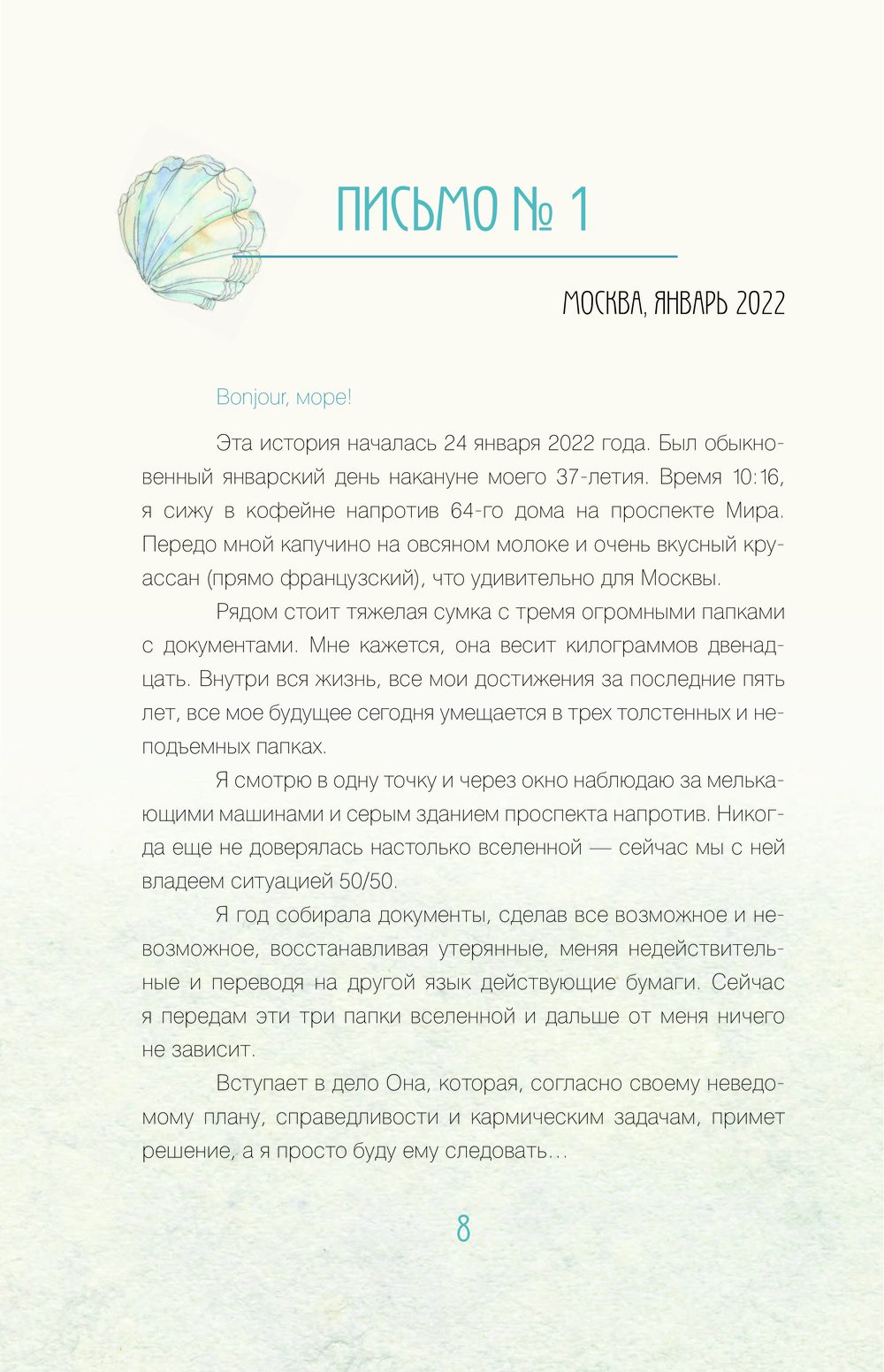 Если эта книга попалась вам в руки – пришло время открыть сердце и услышать себя. Ну что же, я приглашаю вас в путешествие к морю вместе со мной!