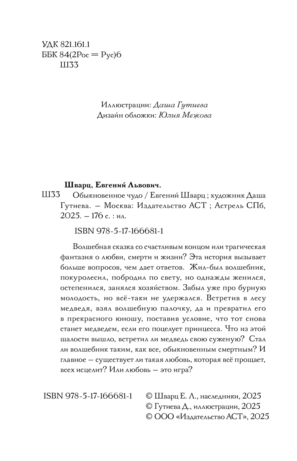 Волшебная сказка со счастливым концом или трагическая фантазия о любви, смерти и жизни? Эта история вызывает больше вопросов, чем дает ответов. Жил-был волшебник, покуролесил, побродил по свету, но однажды женился, остепенился, занялся хозяйством. Забыл уже про бурную молодость, но все-таки не удержался. Встретив в лесу медведя, взял волшебную палочку, да и превратил его в прекрасного юношу, поставив условие, что тот снова станет медведем, если его поцелует принцесса. Что из этой шалости вышло, встретил ли медведь свою суженую? Стал ли волшебник таким, как все, обыкновенным смертным? И главное – существует ли такая любовь, которая всё прощает, всех исцелит? Или любовь – это сделка?