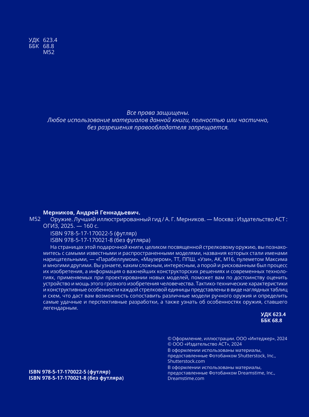 На страницах этого большого подарочного издания представлены различные модели стрелкового оружия, рассказывается история их создания и развития, подробно рассмотрены тактико-технические характеристики и конструктивные особенности каждой единицы.