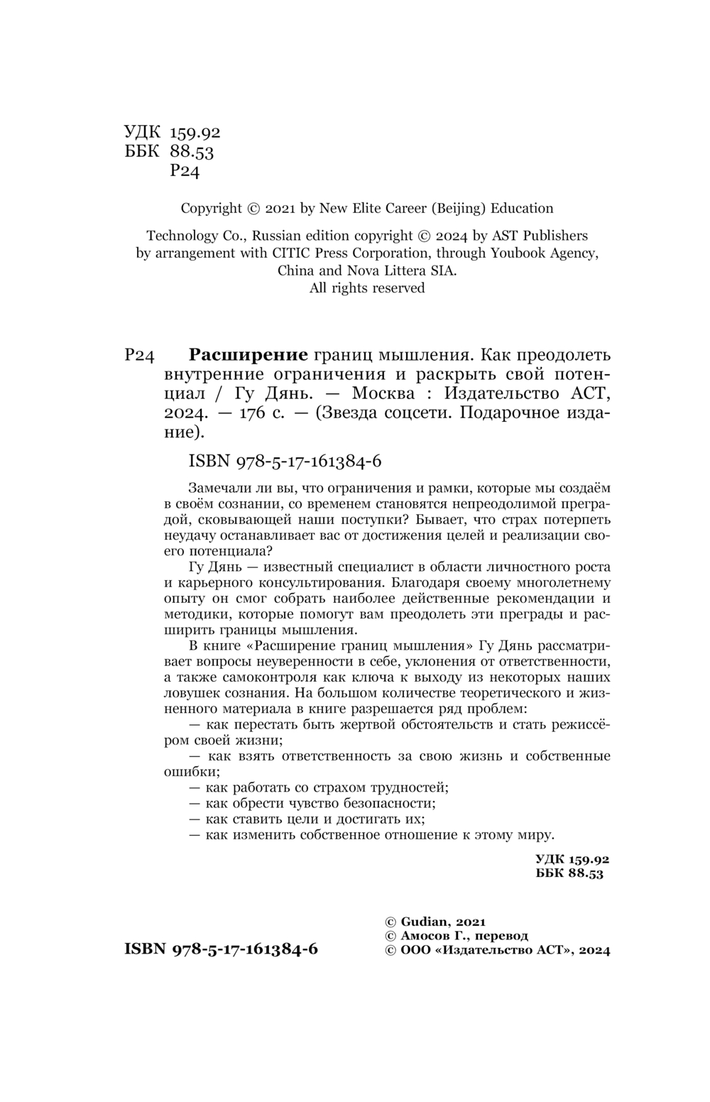 Гу Дянь – известный специалист в области личностного роста и карьерного консультирования. Благодаря своему многолетнему опыту, он смог собрать наиболее действенные рекомендации и методики, которые помогут вам преодолеть эти преграды и расширить границы мышления.