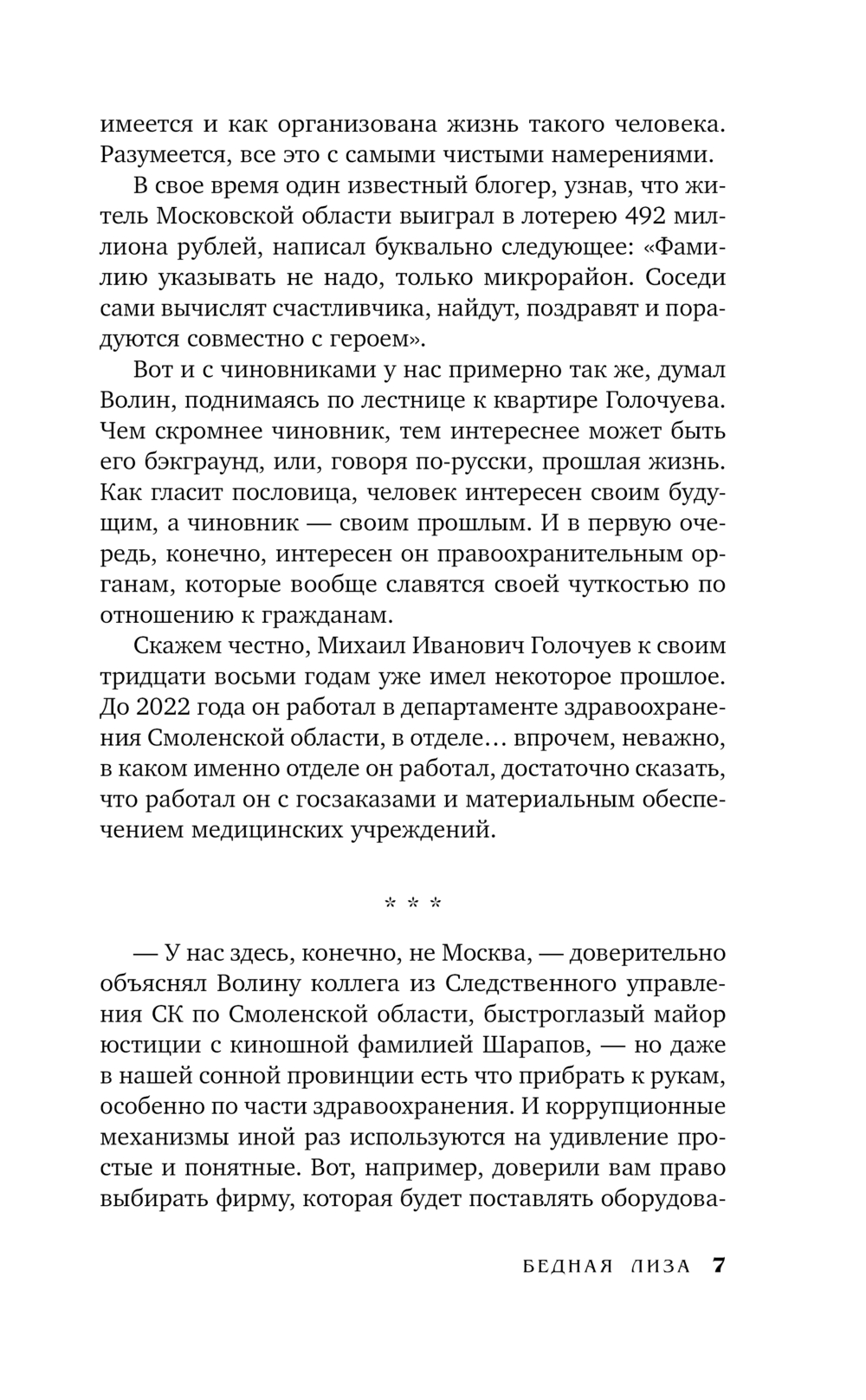Старший следователь Волин берется за расследование дела чиновника Министерства здравоохранения Михаила Голочуева, который работает в Москве. Голочуев подозревается в коррупции, в частности в том, что ему давались миллиардные взятки за распределение госзаказа на поставку медицинского оборудования. Во время следствия выясняется, что ни существенной недвижимости в России или за рубежом, ни банковских счетов, ни предметов роскоши у чиновника нет. В Москве он живет в служебной квартире, и вся обстановка тут – казенная. За советом Волин обращается к своему доброму знакомому, историку спецслужб генералу КГБ в отставке Сергею Сергеевичу Воронцову. Он может попытаться по своим каналам узнать кое-что о Голочуеве. По просьбе генерала Волин также пересылает Воронцову очередные мемуары Нестора Васильевича Загорского, которые старший следователь расшифровал.